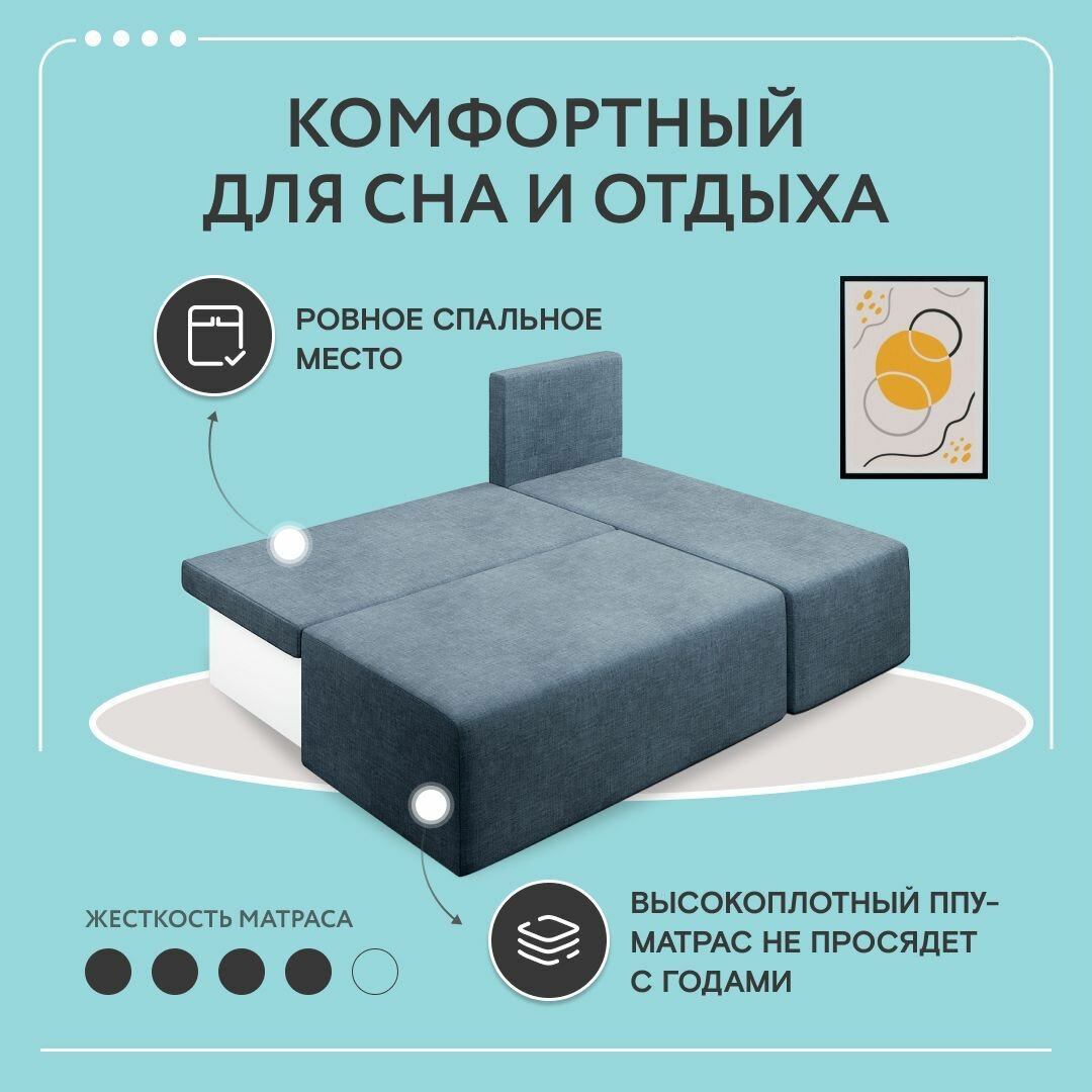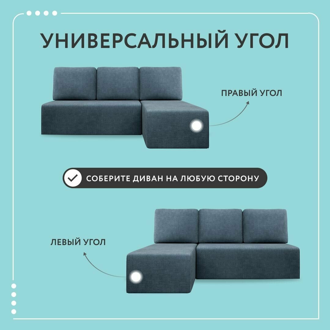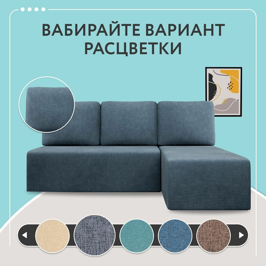 Диван-кровать Dee One раскладной угловой Каир / Консул / Крит, еврокнижка, рогожка, 187x87x84, с ящиком, бирюзовый