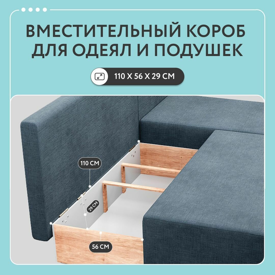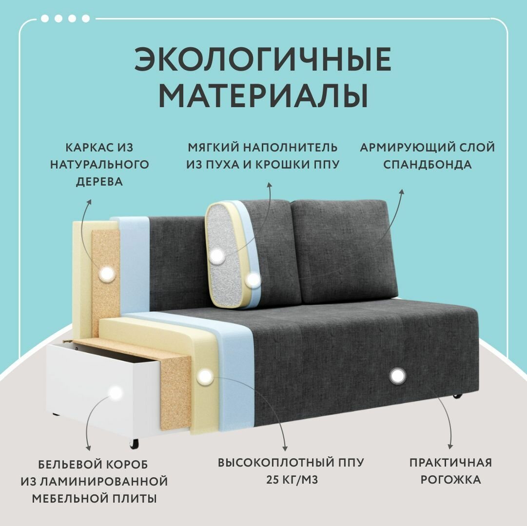 | Особенности | раскладная конструкция, съемные подушки, ящик для белья |
