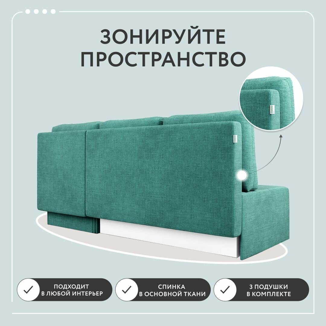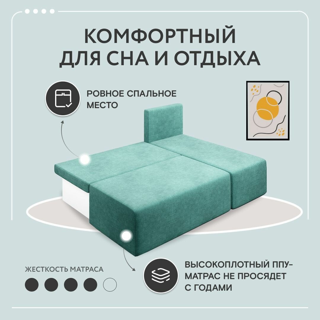 Диван-кровать Dee One раскладной угловой Каир / Консул / Крит, еврокнижка, рогожка, 187x87x84, с ящиком, бирюзовый