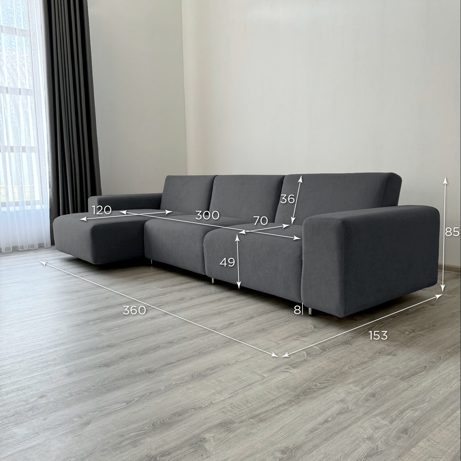 Диван-кровать Redsofa Аурис 360 см графит Teddi. Раскладной угловой диван со съемными чехлами Редсофа, для дома и офиса.