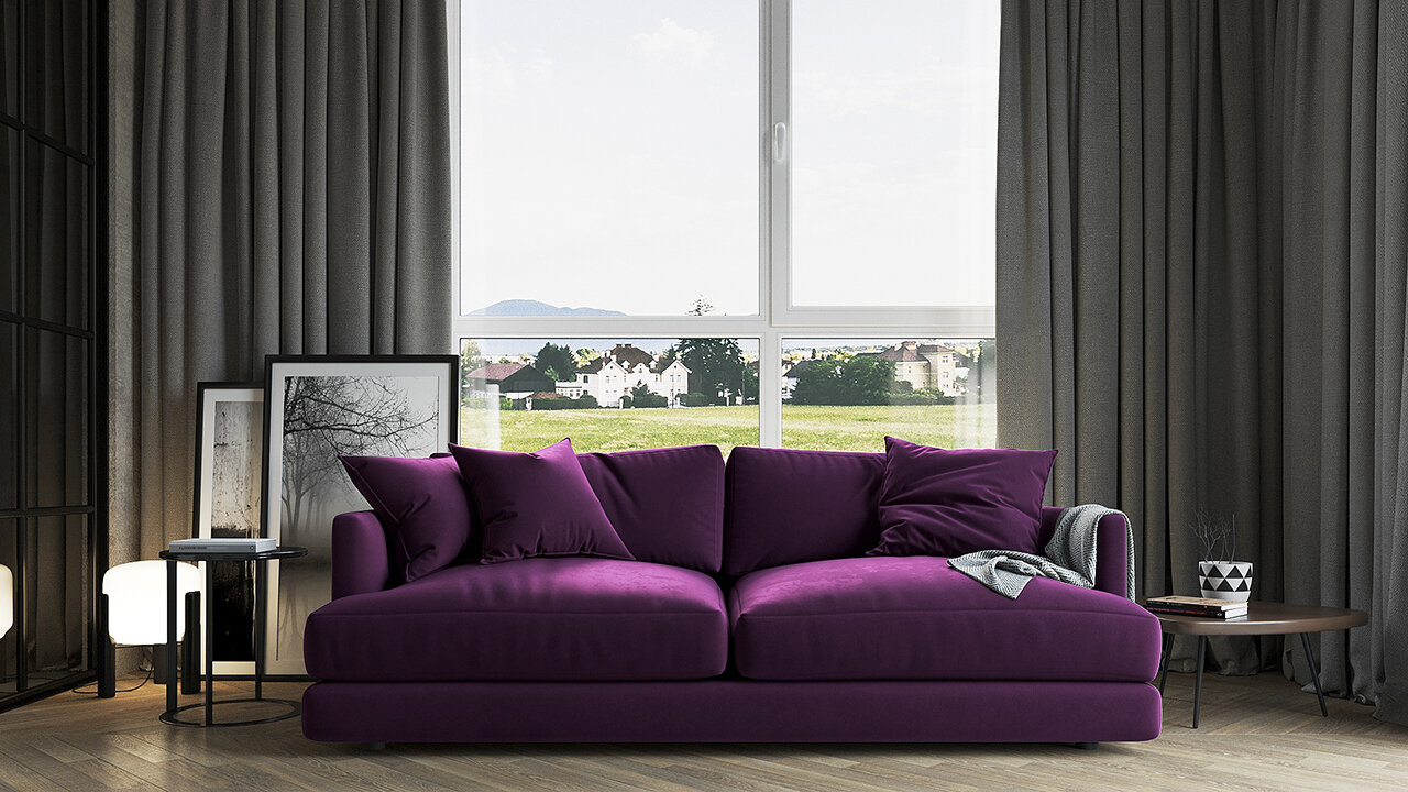 Угловой диван Ибица Vivaldi 19 Еврокнижка Фиолетовый с бельевым ящиком 300x209x90 ФМ мебель