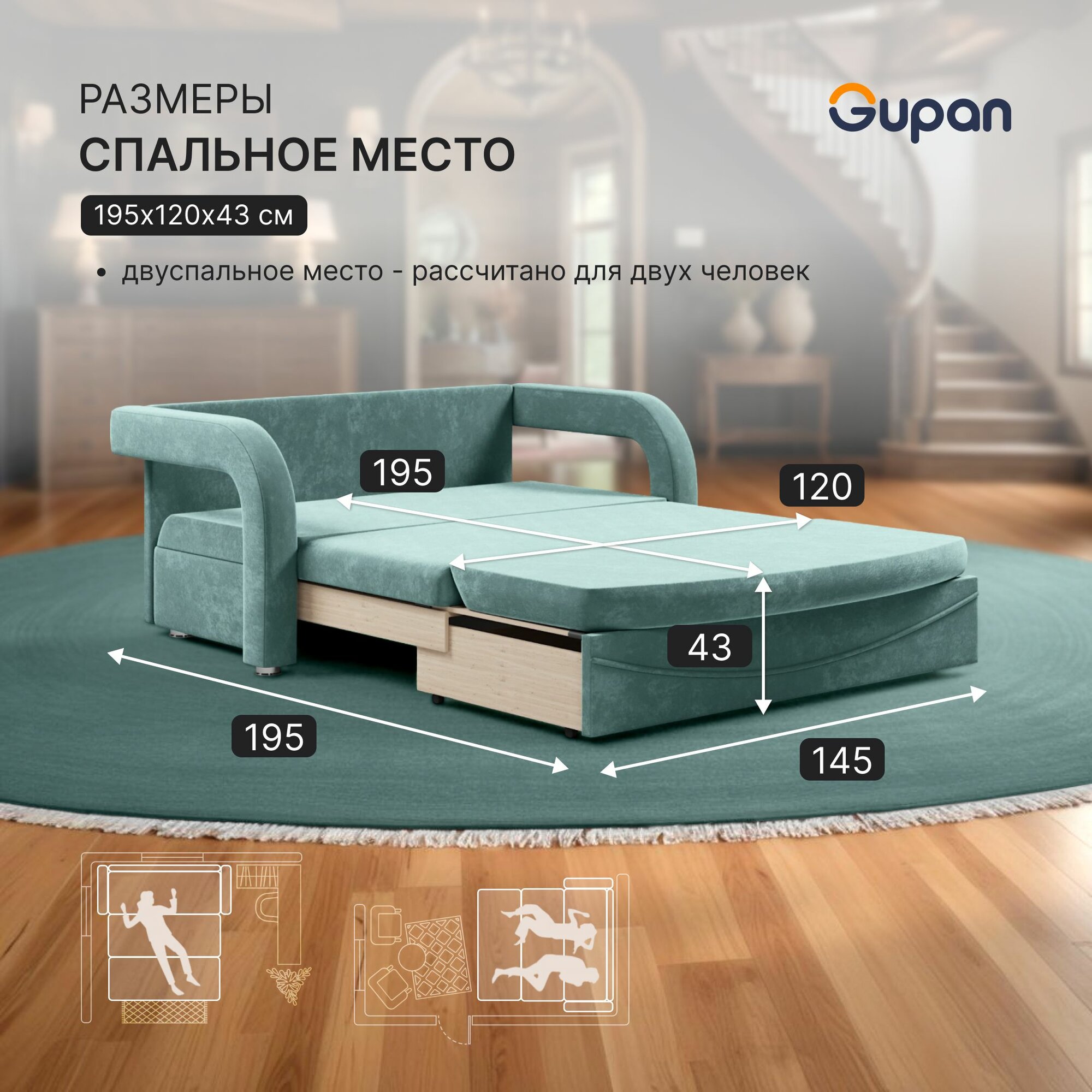 СохранитьДиван кровать Gupan Алекс Велюр Bingo Mint, раскладной, механизм выкатной, беспружинный, с ящиком для белья интересное: