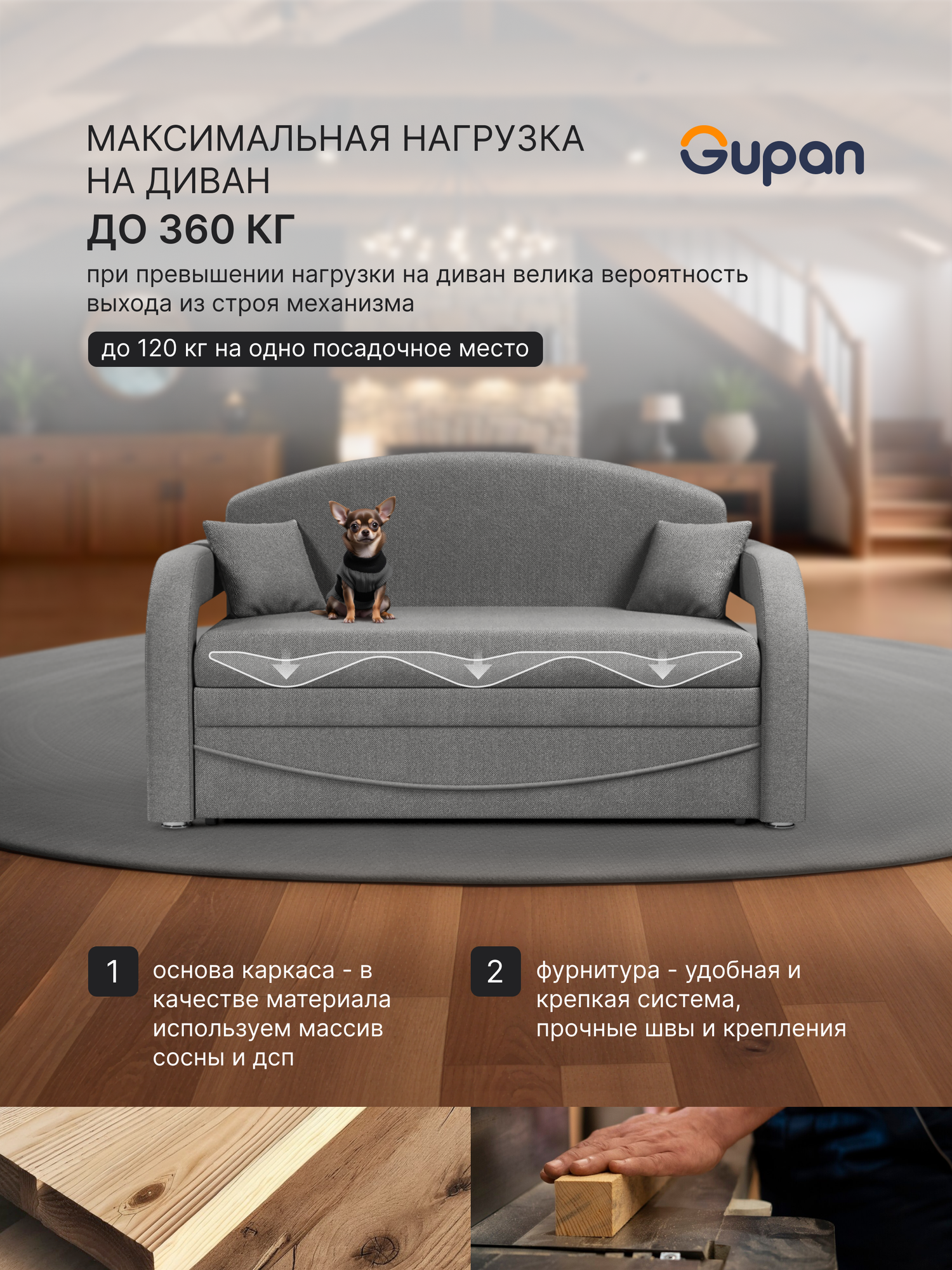 Диван кровать Gupan Алекс Рогожка Savana Mouse, раскладной, механизм выкатной, беспружинный, с ящиком для белья