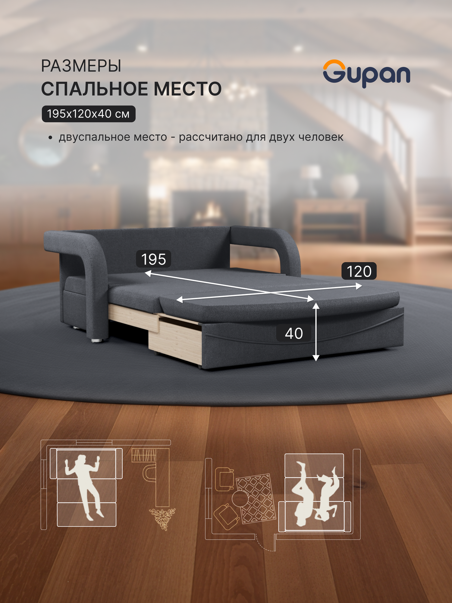 Диван кровать Gupan Алекс Рогожка Savana Mouse, раскладной, механизм выкатной, беспружинный, с ящиком для белья