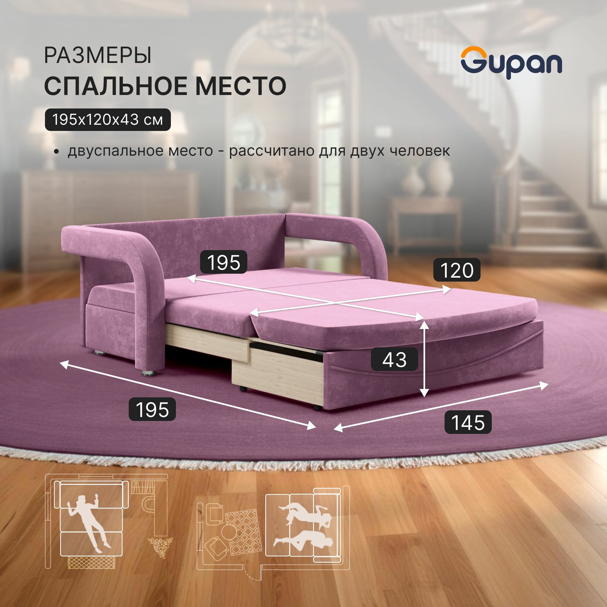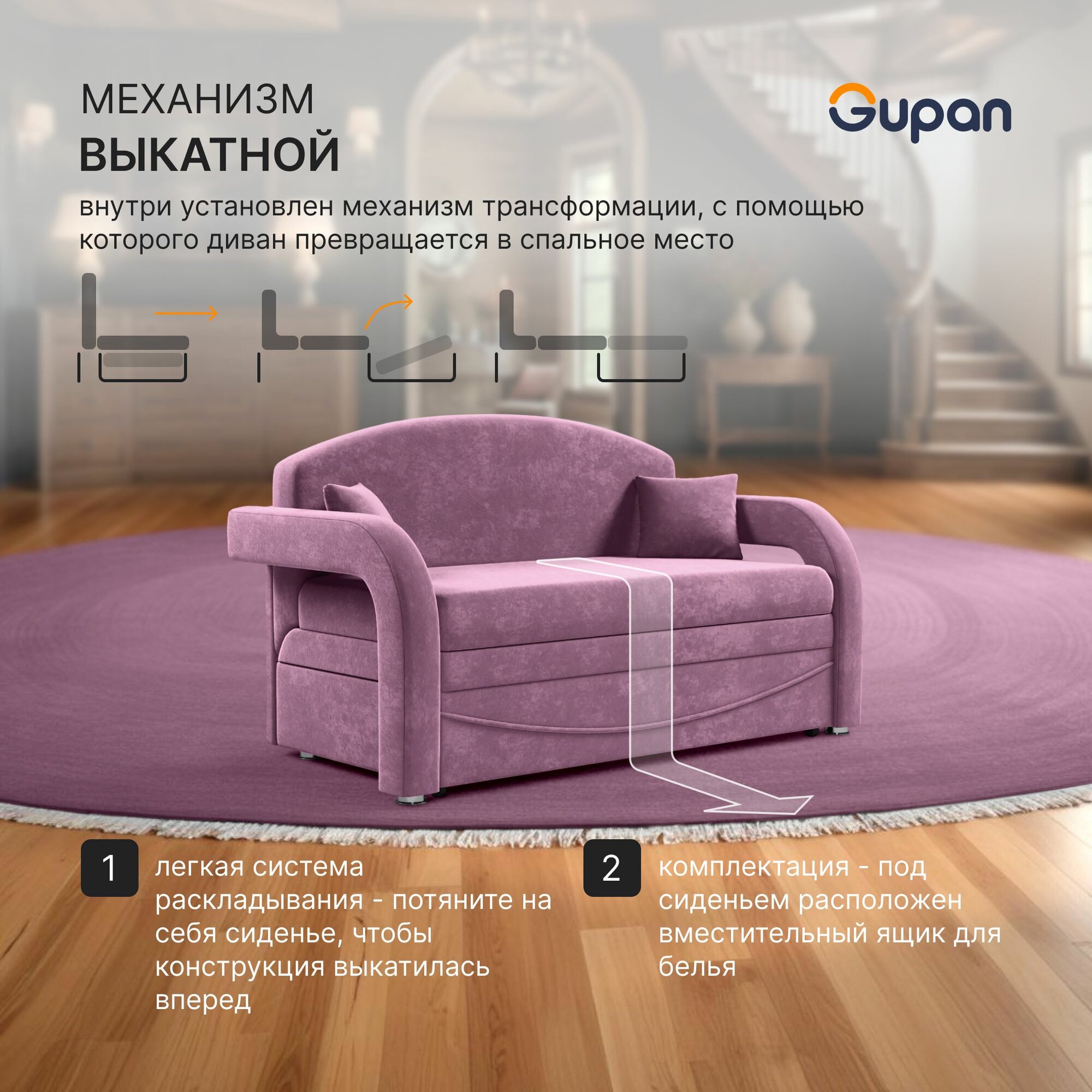 Диван кровать Gupan Алекс Велюр Amigo Berry, раскладной, механизм выкатной, беспружинный, с ящиком для белья