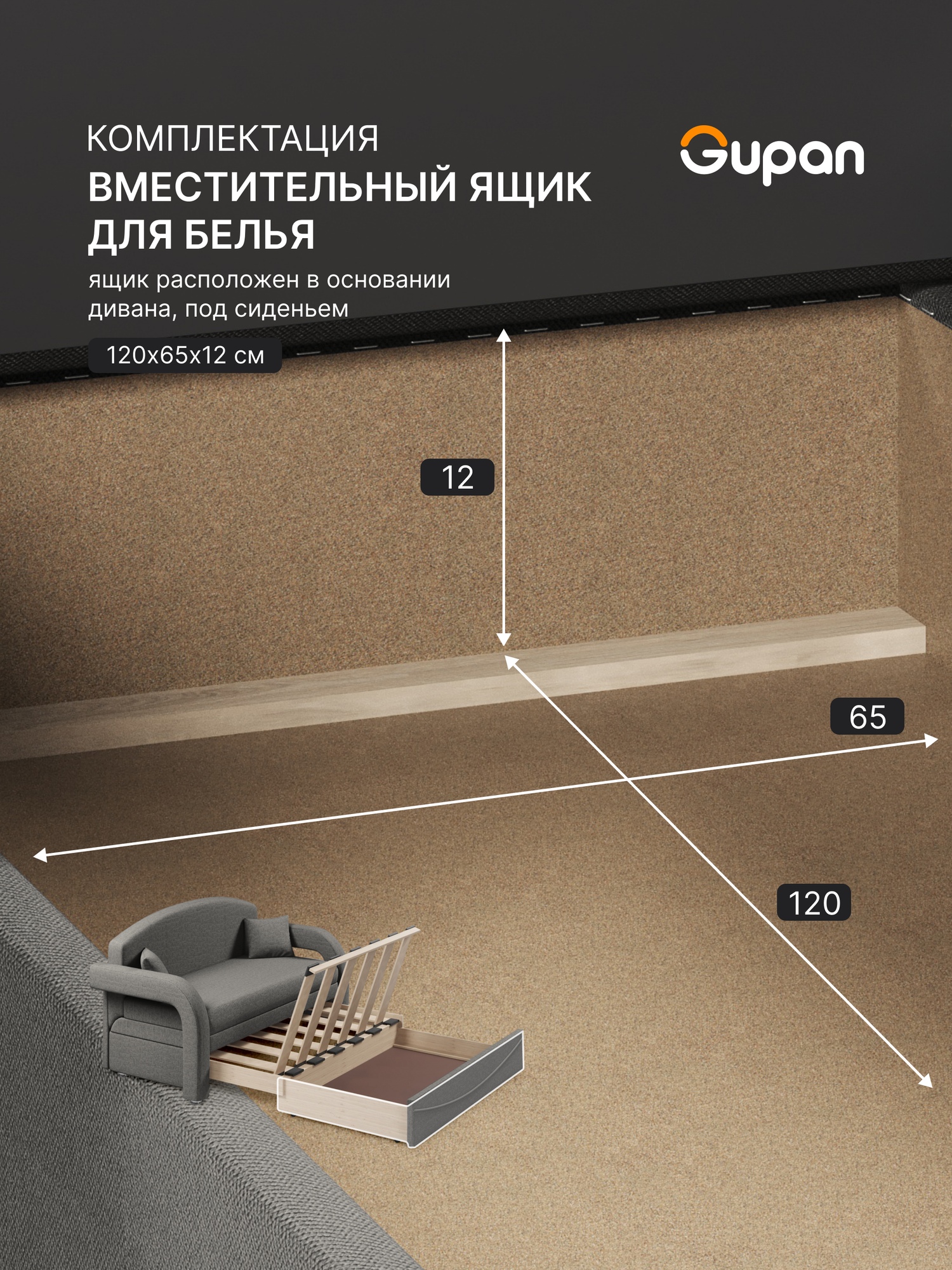 Диван кровать Gupan Алекс Рогожка Savana Vision, раскладной, механизм выкатной, беспружинный, с ящиком для белья