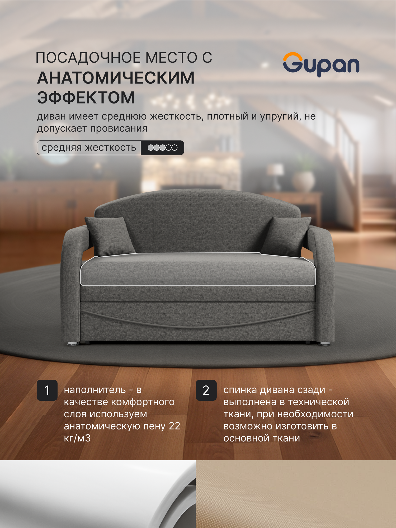 Диван кровать Gupan Алекс Рогожка Savana Mouse, раскладной, механизм выкатной, беспружинный, с ящиком для белья