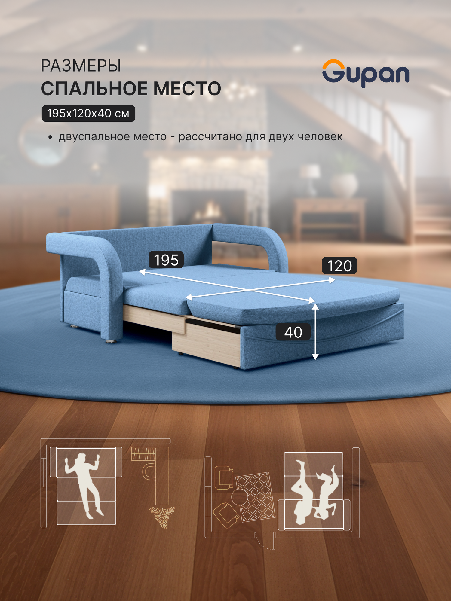 Купить Диван кровать Gupan Алекс Рогожка Savana Blue, раскладной, механизм выкатной, беспружинный, с ящиком для белья