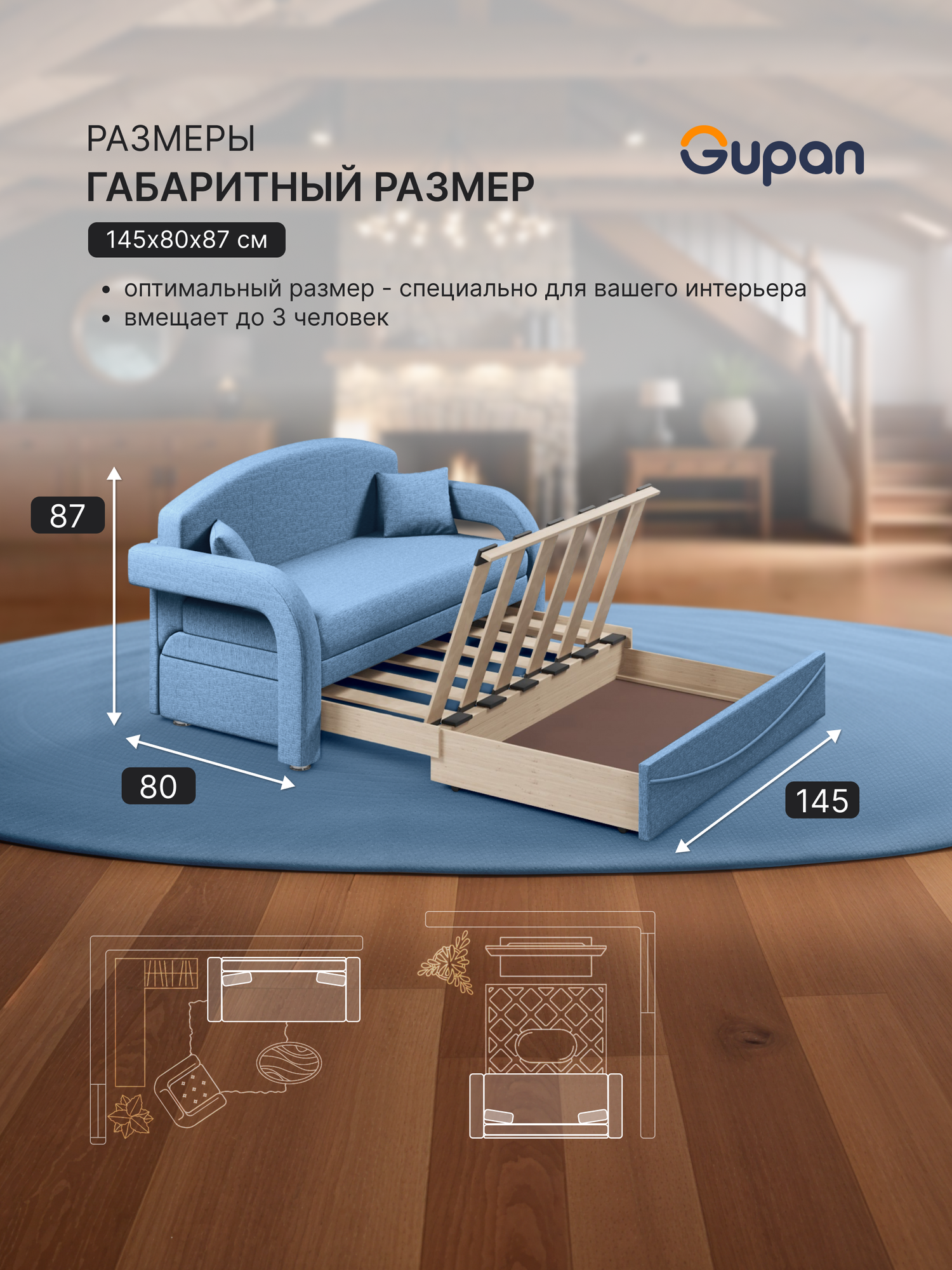 СохранитьДиван кровать Gupan Алекс Рогожка Savana Blue, раскладной, механизм выкатной, беспружинный, с ящиком для белья интересное: