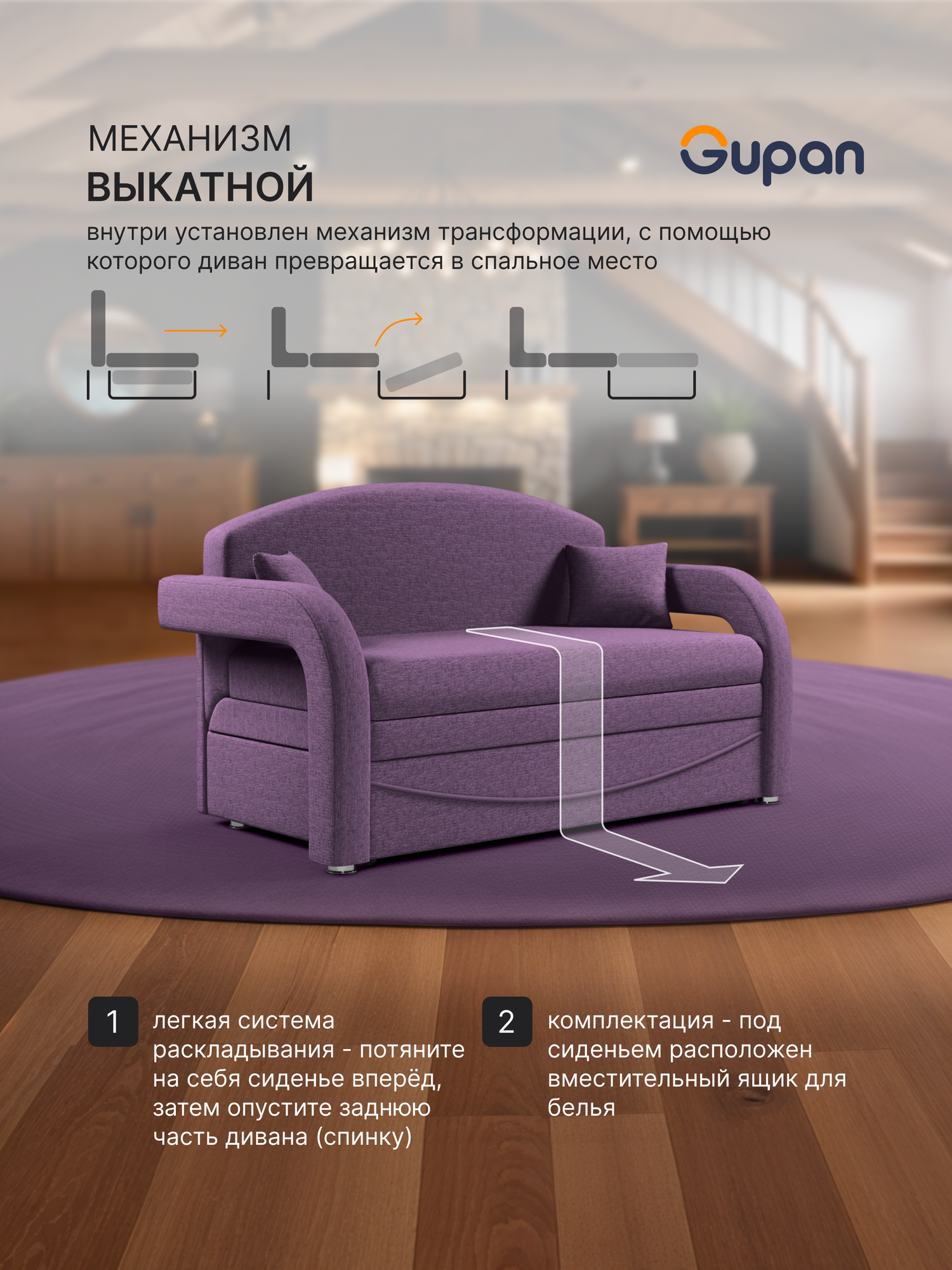Купить Диван кровать Gupan Алекс Рогожка Savana Violet, раскладной, механизм выкатной, беспружинный, с ящиком для белья