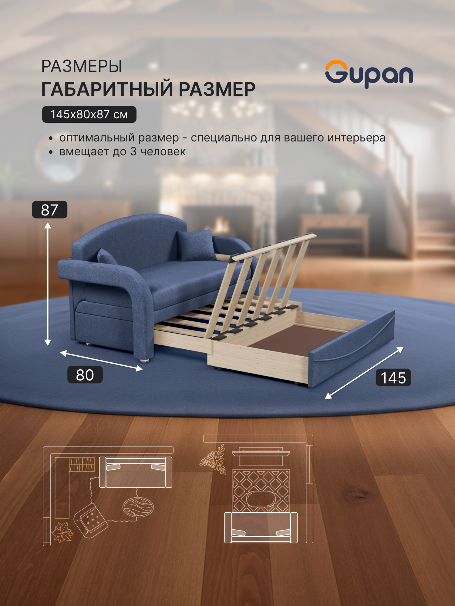 Диван кровать Gupan Алекс Рогожка Savana Denim, раскладной, механизм выкатной, беспружинный, с ящиком для белья