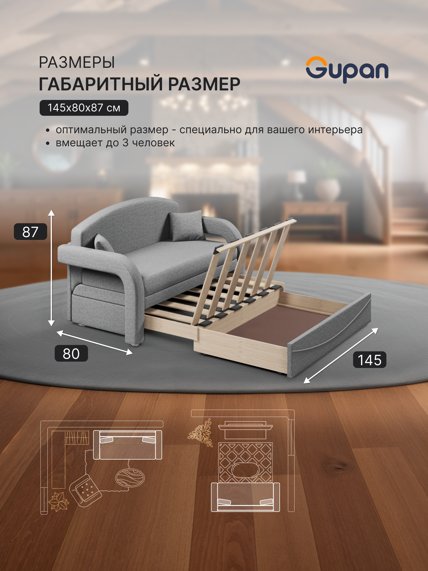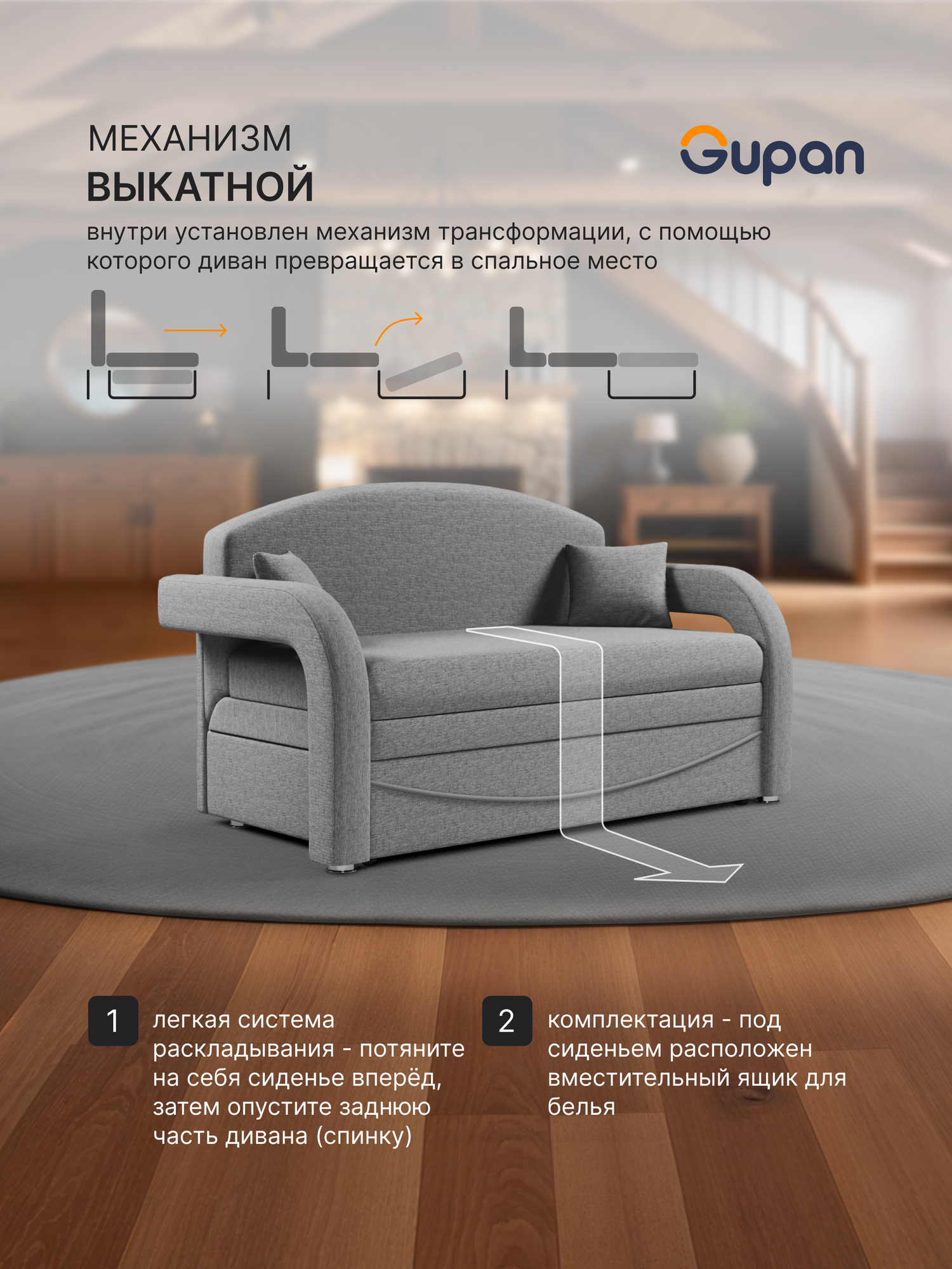СохранитьДиван кровать Gupan Алекс Рогожка Savana Mouse, раскладной, механизм выкатной, беспружинный, с ящиком для белья интересное: