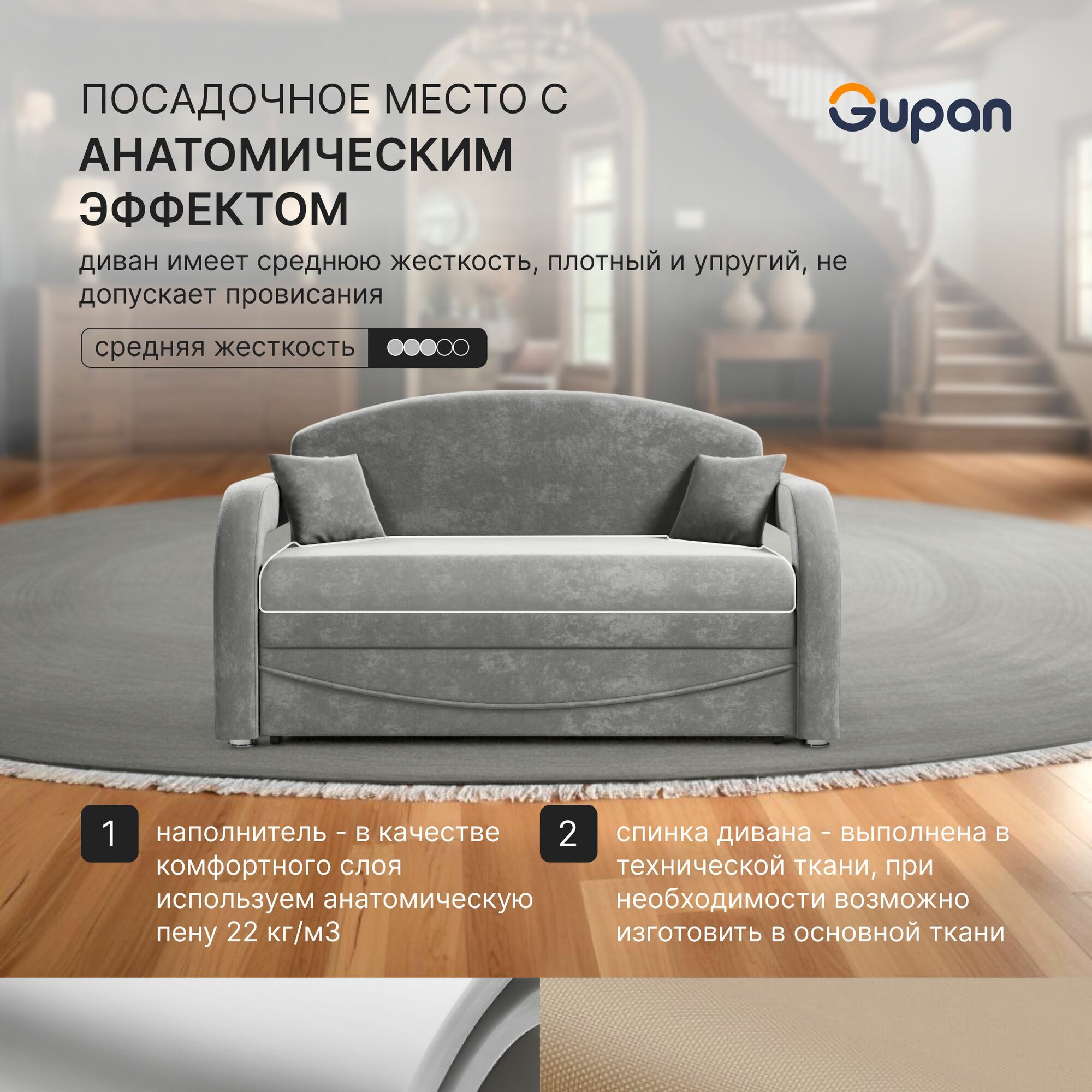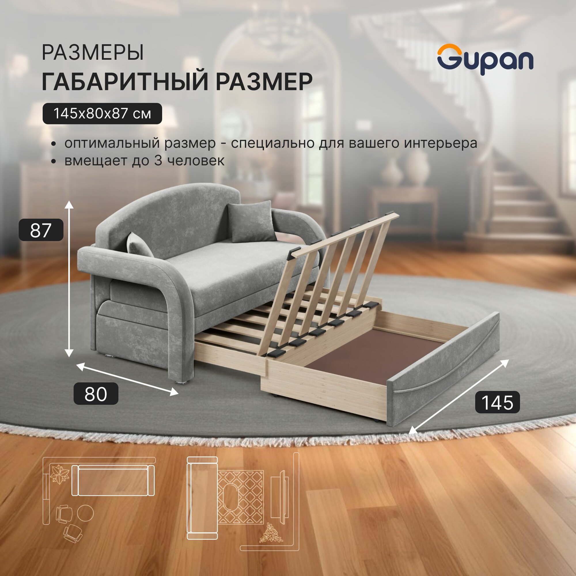 Диван кровать Gupan Алекс Рогожка Savana Mouse, раскладной, механизм выкатной, беспружинный, с ящиком для белья