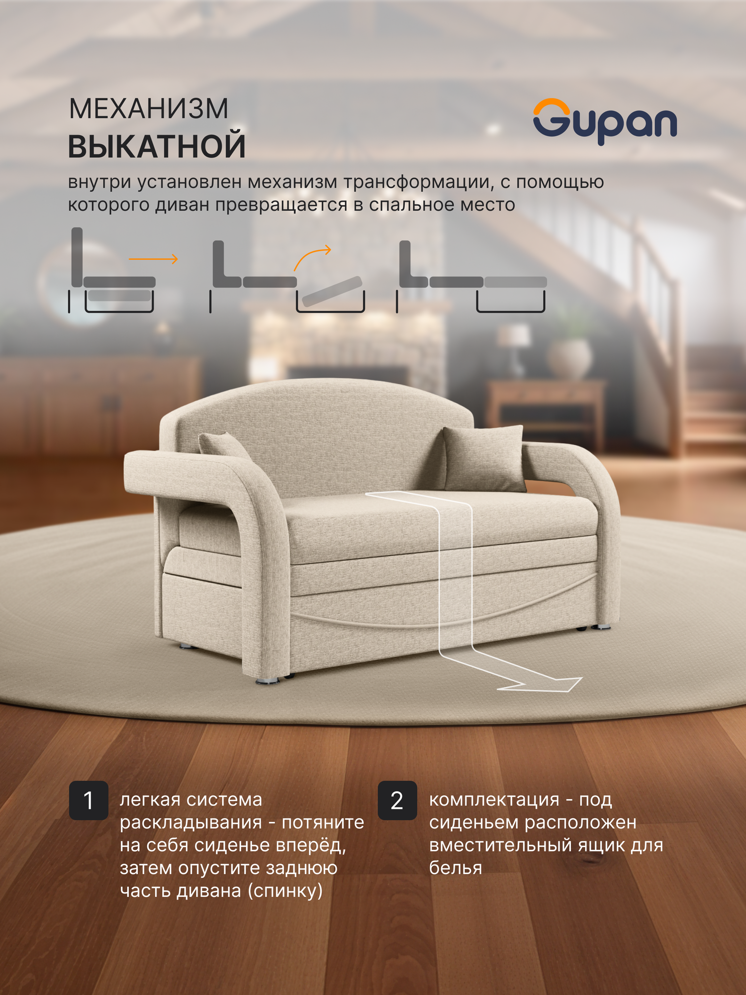 Диван кровать Gupan Алекс Рогожка Бежевая, раскладной, механизм выкатной, беспружинный, с ящиком для белья