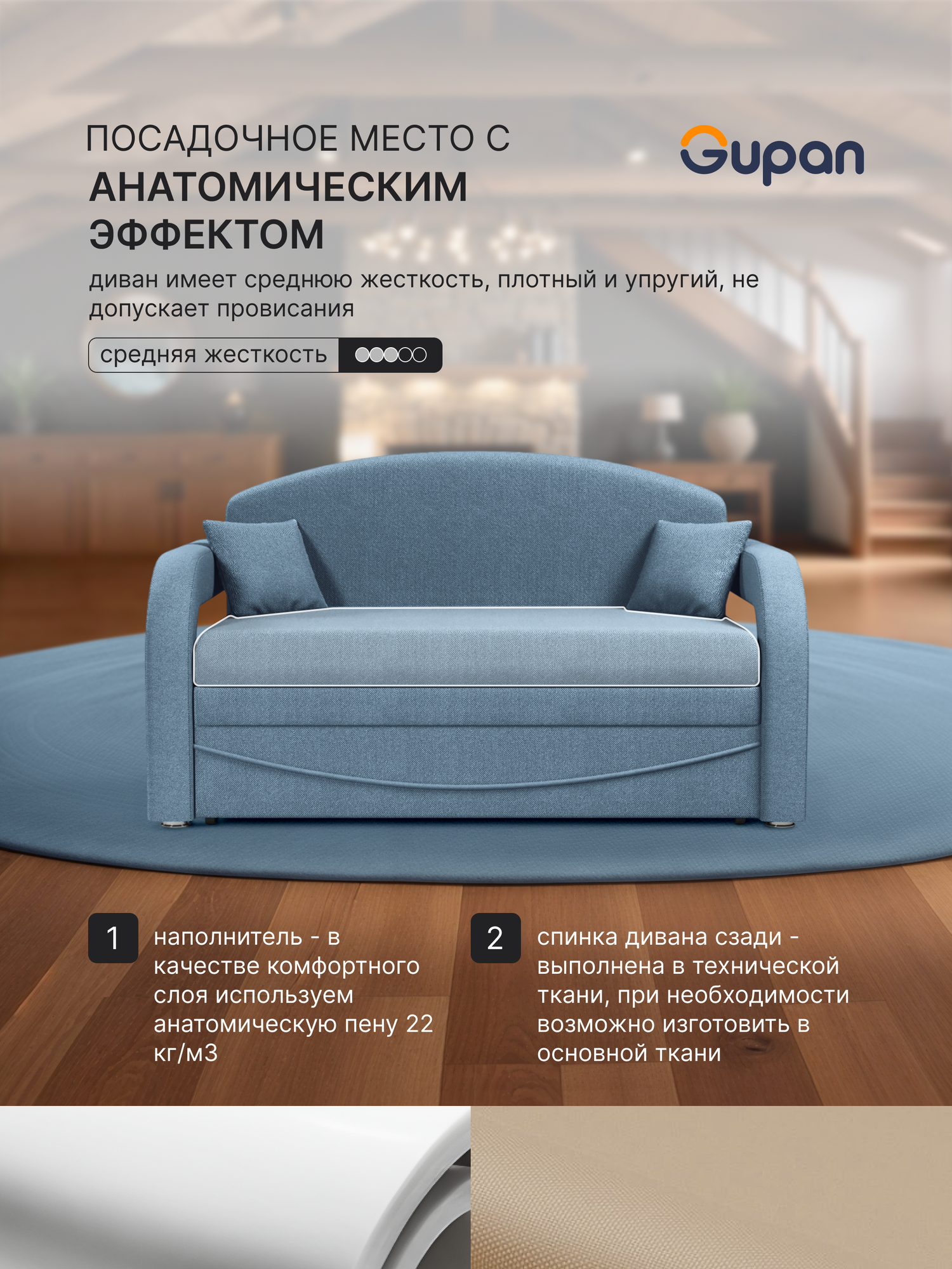 Диван кровать Gupan Алекс Рогожка Savana Lagoon, раскладной, механизм выкатной, беспружинный, с ящиком для белья