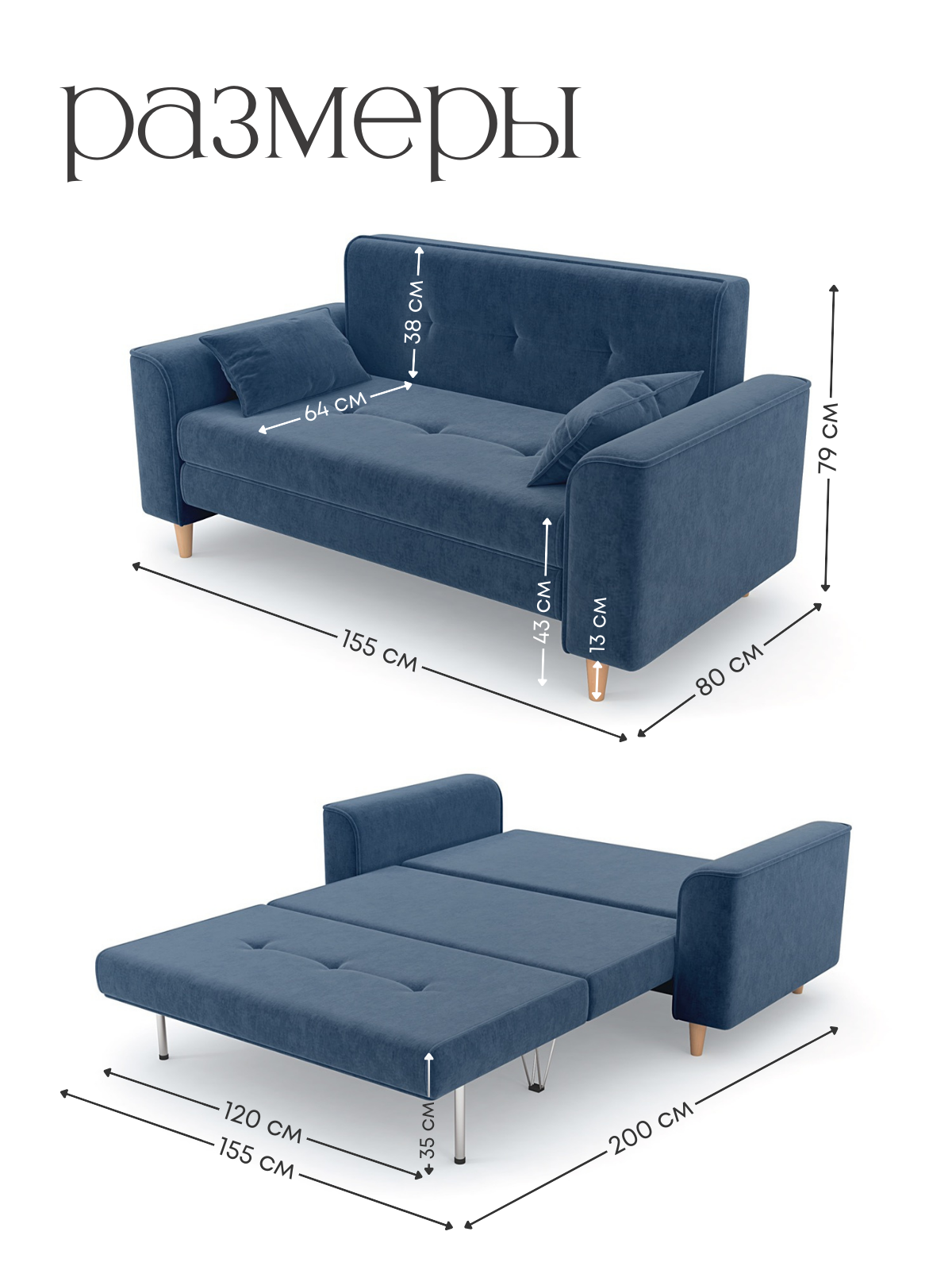 СохранитьДиван-кровать для дома, раскладной диван в квартиру, Твист, 120х200, синий интересное: