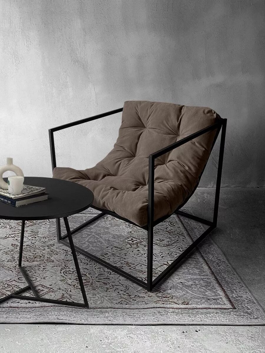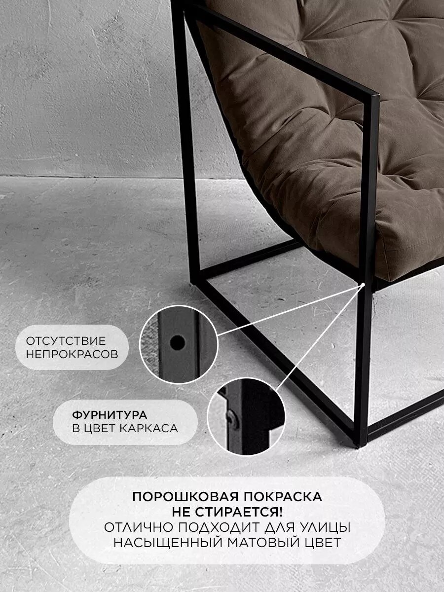 Кресло мягкое удобное для отдыха, уличное, на балкон, на веранду, в стиле лофт, минимализм, Лофтовик + Коричневый велюр