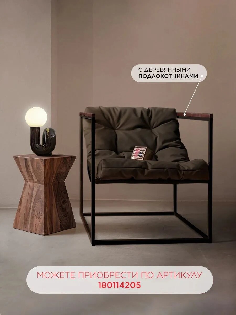 Кресло мягкое удобное для отдыха, уличное, на балкон, на веранду, в стиле лофт, минимализм, Лофтовик+ "Коричневый кожзам
