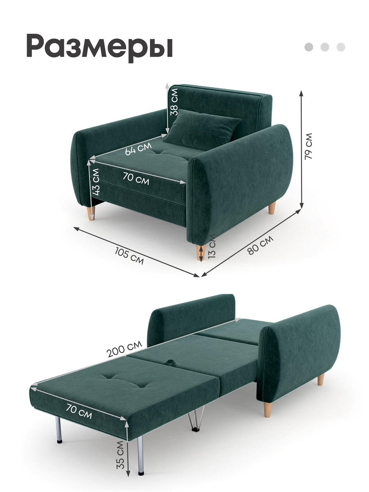 | Комплектация | Кресло-кровать на высоких ножках (13 см), декоративная подушка в подарок. |