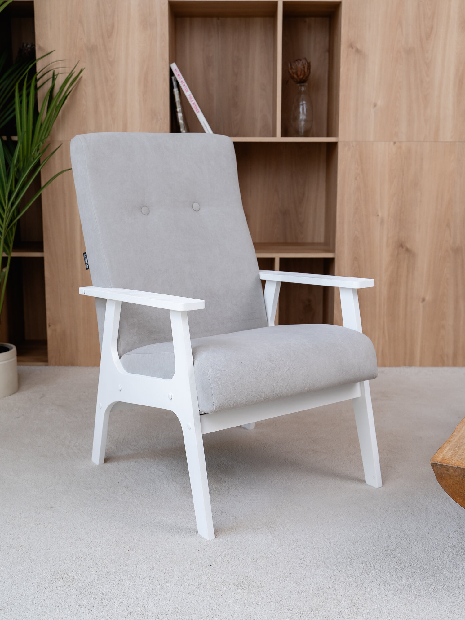 Кресло Chill Zasidelis велюр светло-серое, белое масло