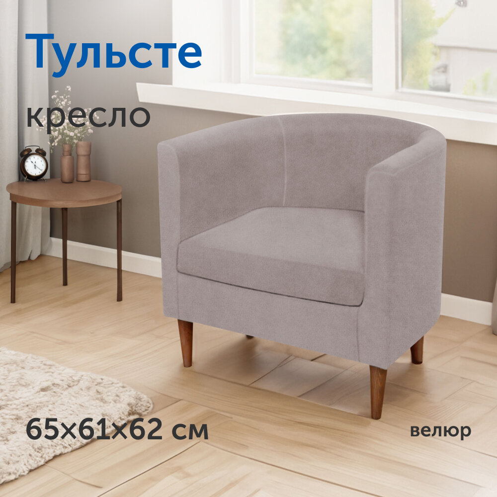 Мягкое кресло IKEA/Икеа Тульсте, 65х61х62 см (серый, велюр)