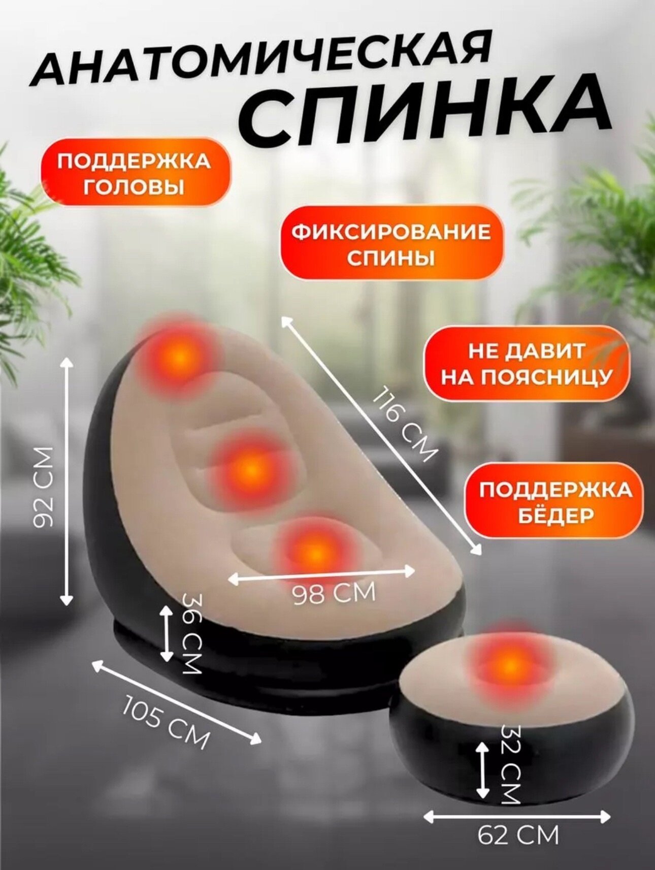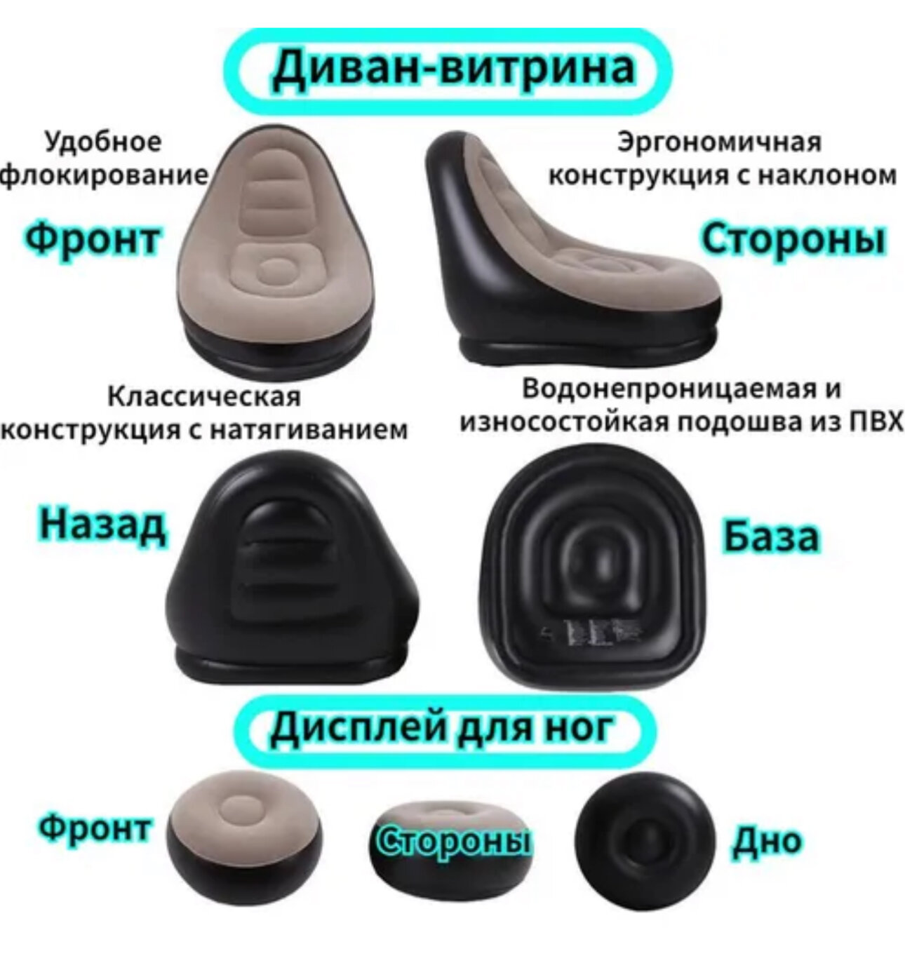 Надувное кресло с пуфом-подставкой для ног