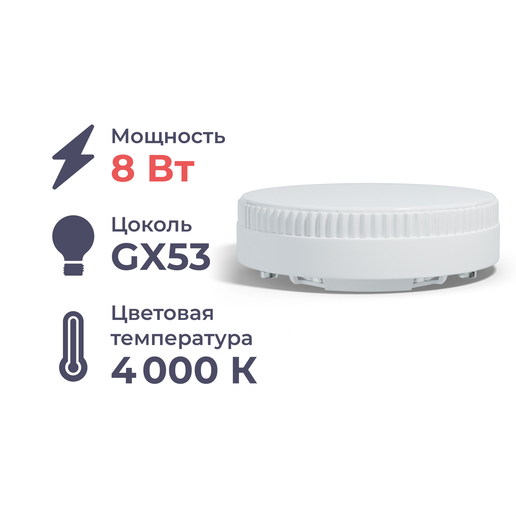 Светодиодная лампа GX53 "таблетка" 8Вт, 4000K