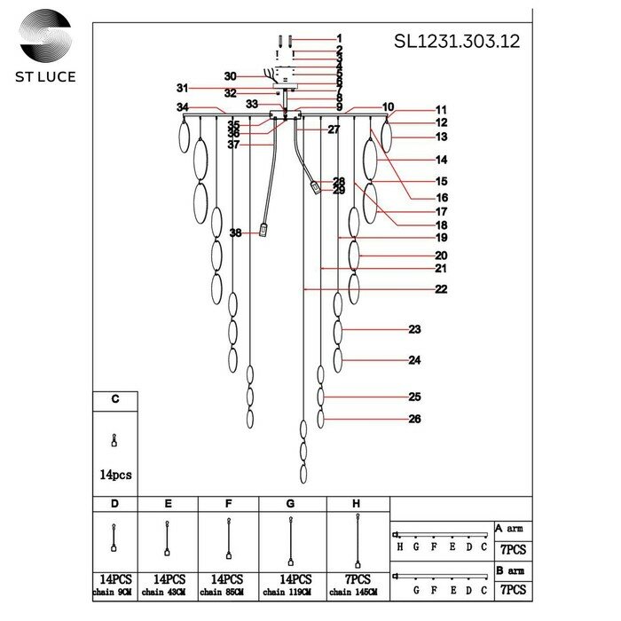 Каскадная светодиодная люстра ST Luce TIVOLI SL1622.313.05