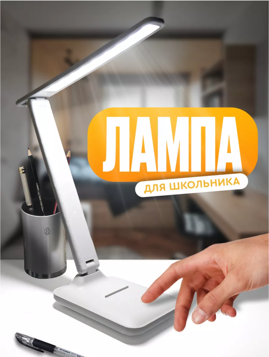 Настольный светильник светодиодный. Настольная лампа с сенсорным управлением. Настольная лампа школьника, светильник для работы, белый интересное: