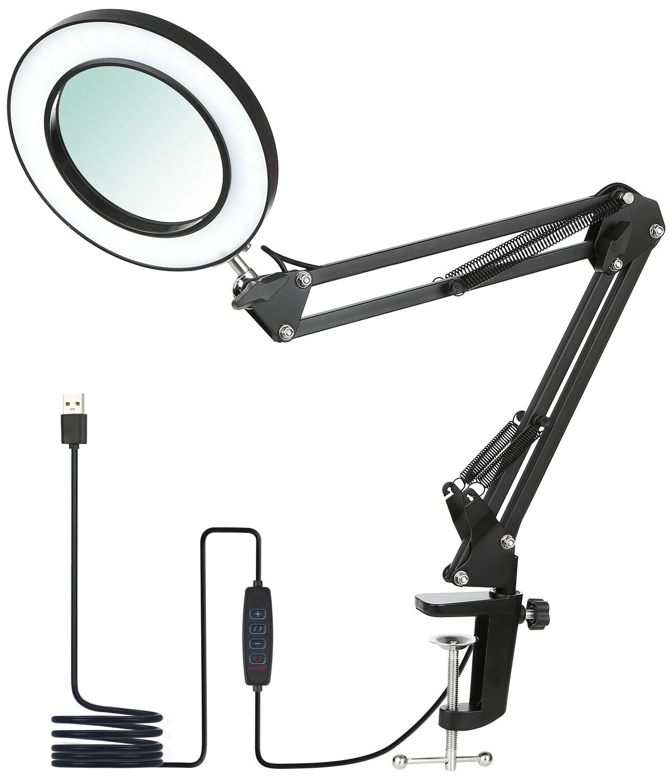 Настольная led лампа лупа на штативе 3ppl, светодиодная (Черный) интересное:
