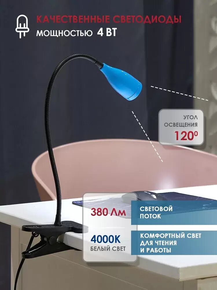 Светильник настольный светодиодный прищепка. Uniel. ULM-D501 4W-4000K BLUE. Механический выключатель. Синий. UL-00010744