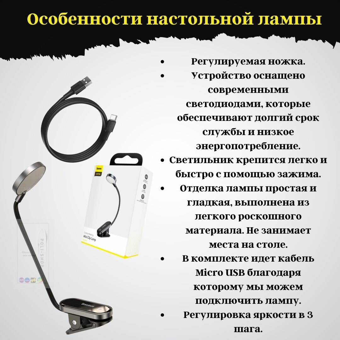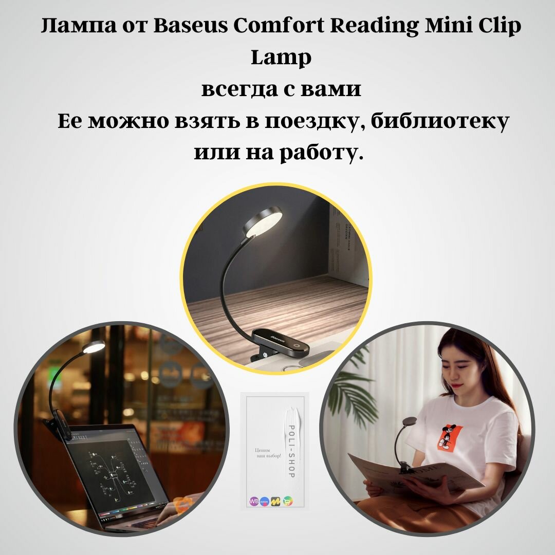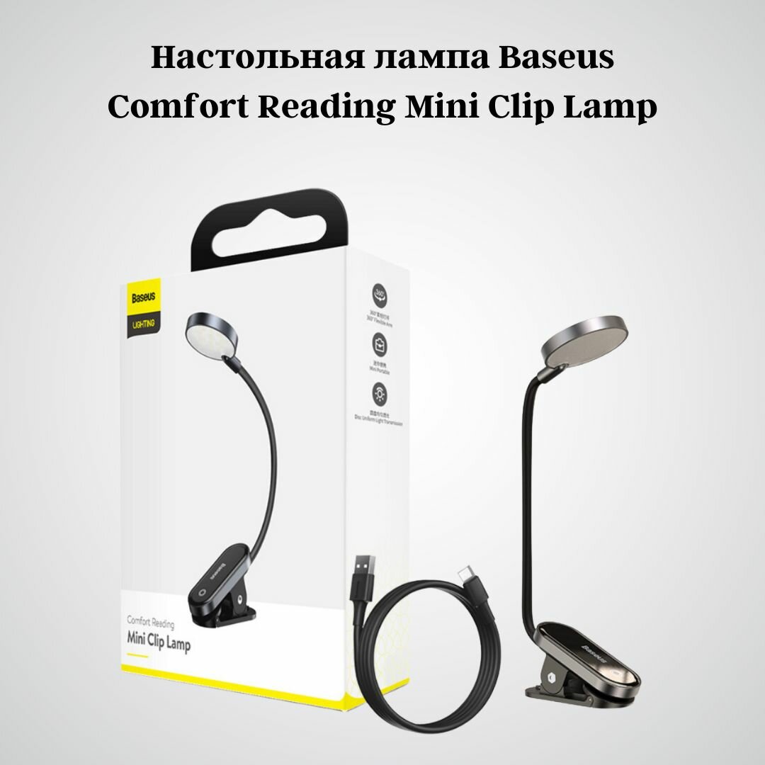 Настольная лампа для чтения Baseus Comfort Reading Mini Clip Lam / Светильник (DGRAD-0G) Dark Gray интересное: