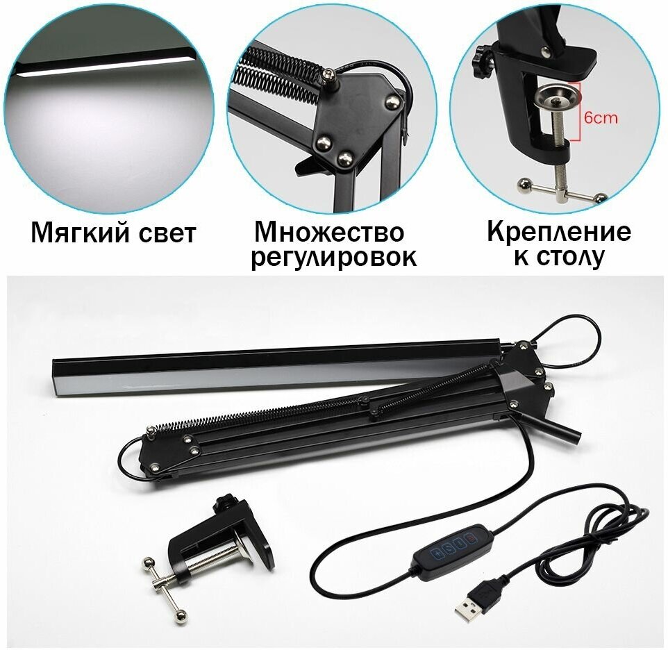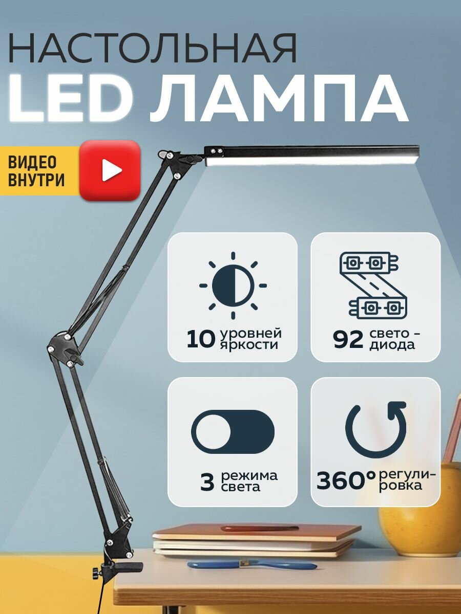 Led лампа настольная светодиодная для школьника, двойная HaBe (Черный)