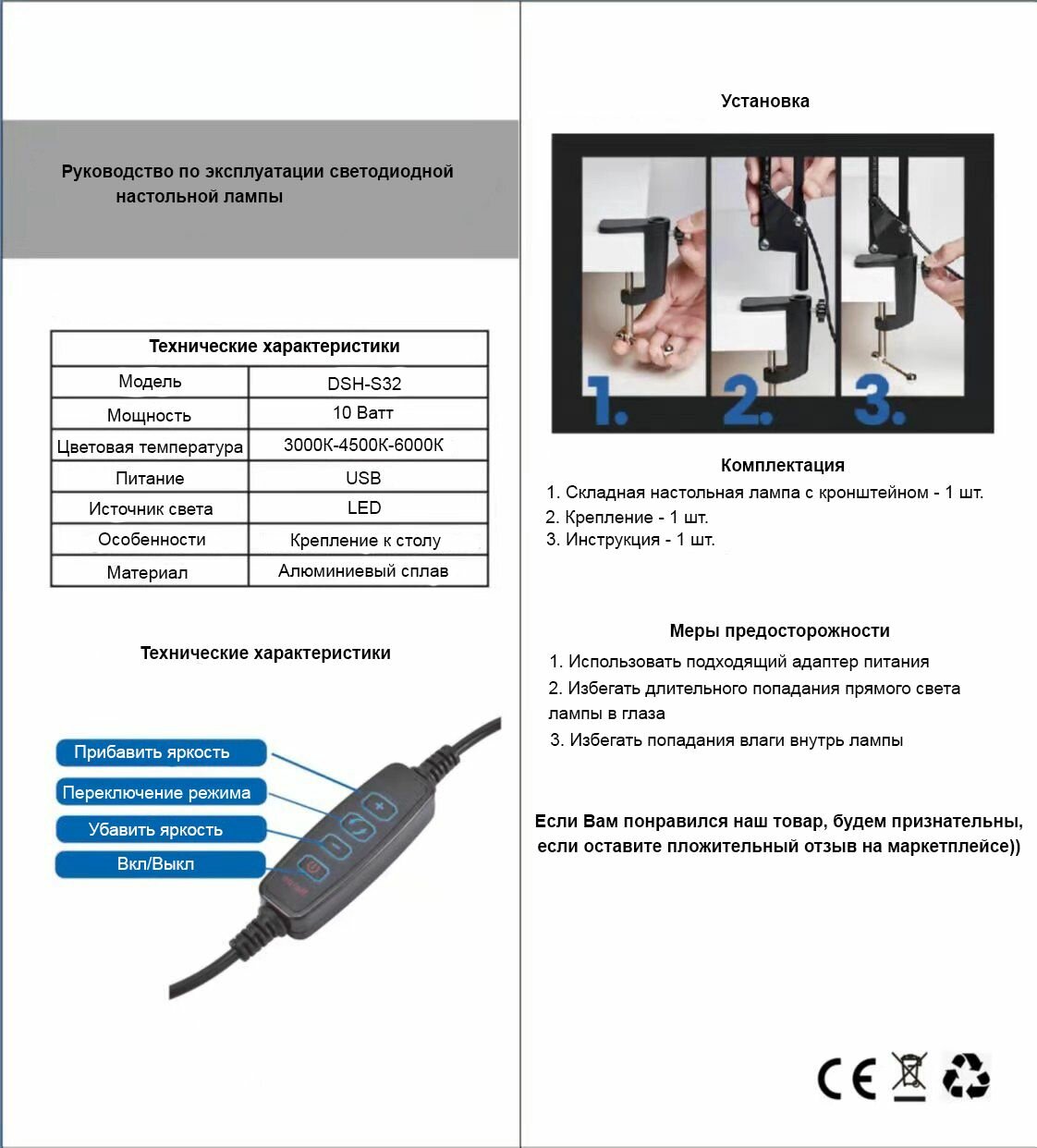 LED лампа настольная HaBe, светодиодная, на штативе (Белый) интересное:
