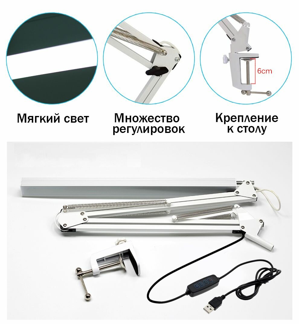 Led лампа настольная светодиодная для школьника, двойная (Белый)
