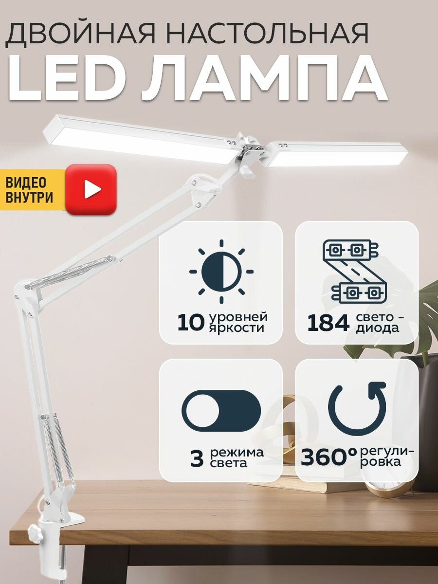 Led лампа настольная светодиодная для школьника, двойная (Белый) интересное: