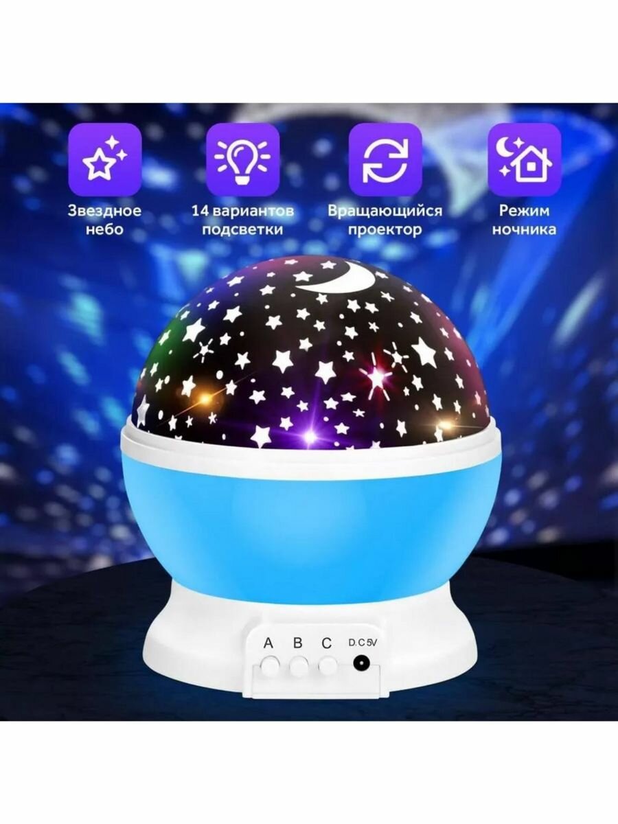 | Дополнительная информация | 3 кнопки: белый свет, цветное свечение и режим вращения |