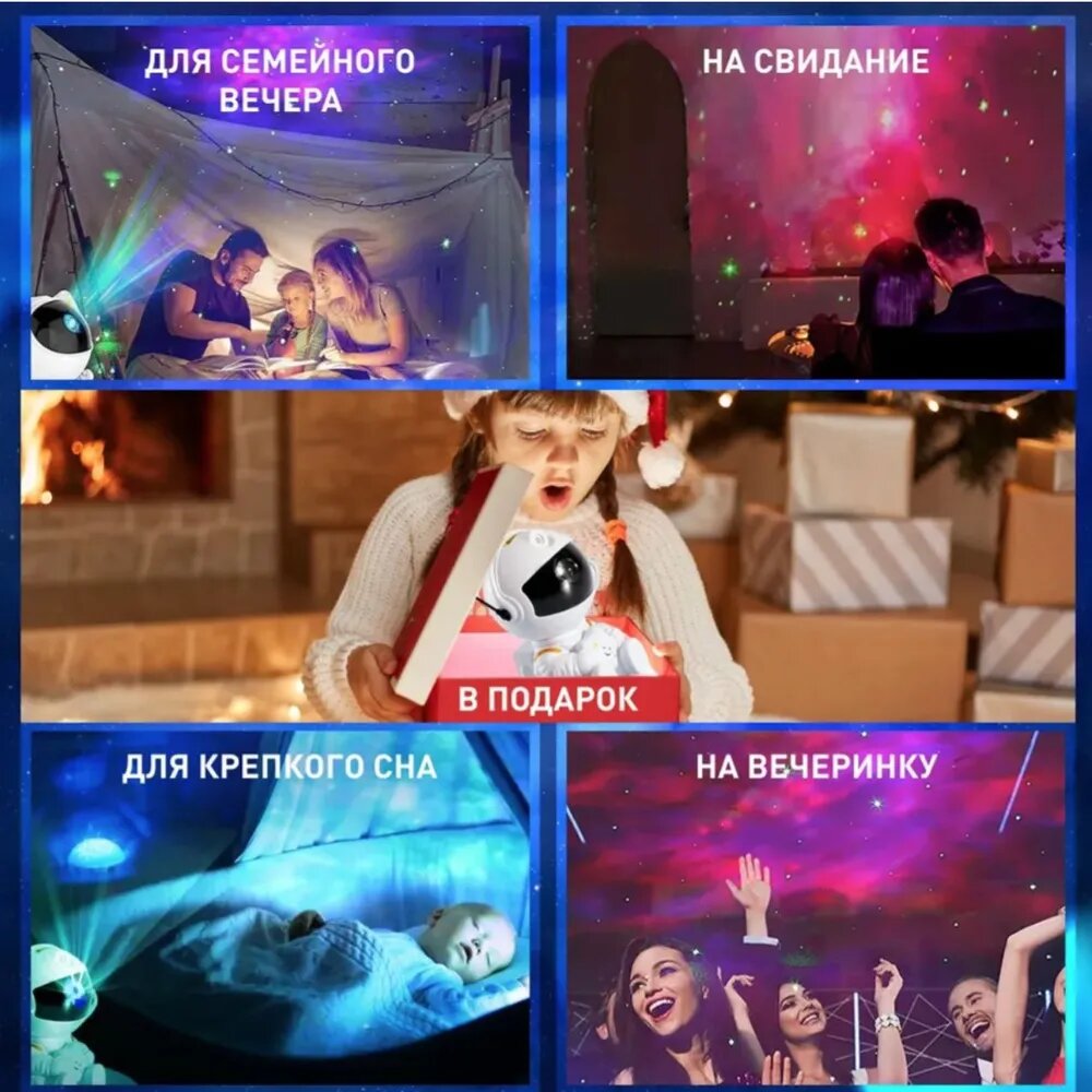 Детский ночник-проектор от Nebula "Космонавт", звездное небо интересное: