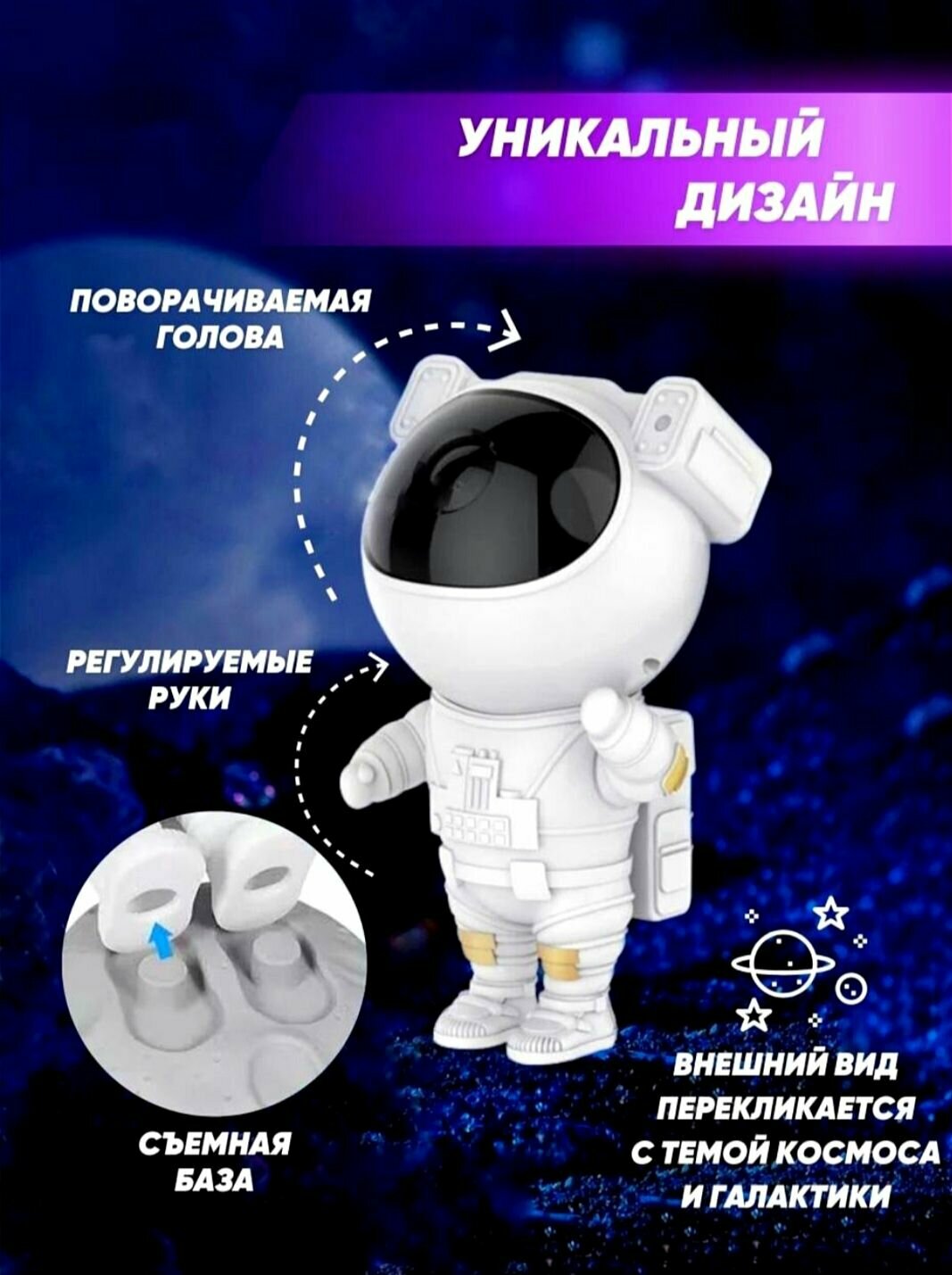 Ночник звёздное небо космонавт с пультом интересное: