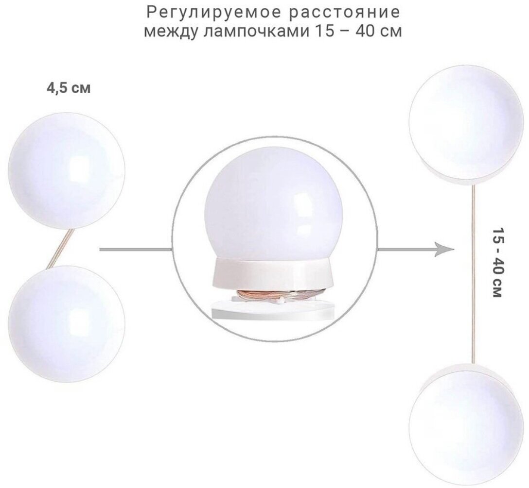 Купить Подсветка для зеркала светодиодная, комплект 10-ти самоклеящихся светильников
