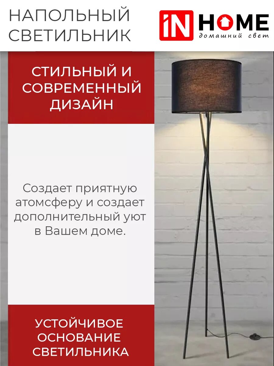 Торшер напольный светильник лофт IN HOME ТНО 04Ч 60Вт Е27 230В черный