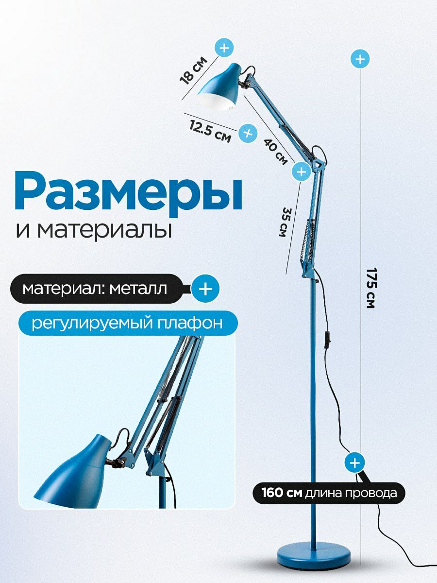| Особенности | регулировка наклона плафона / регулировка по высоте / с абажуром |