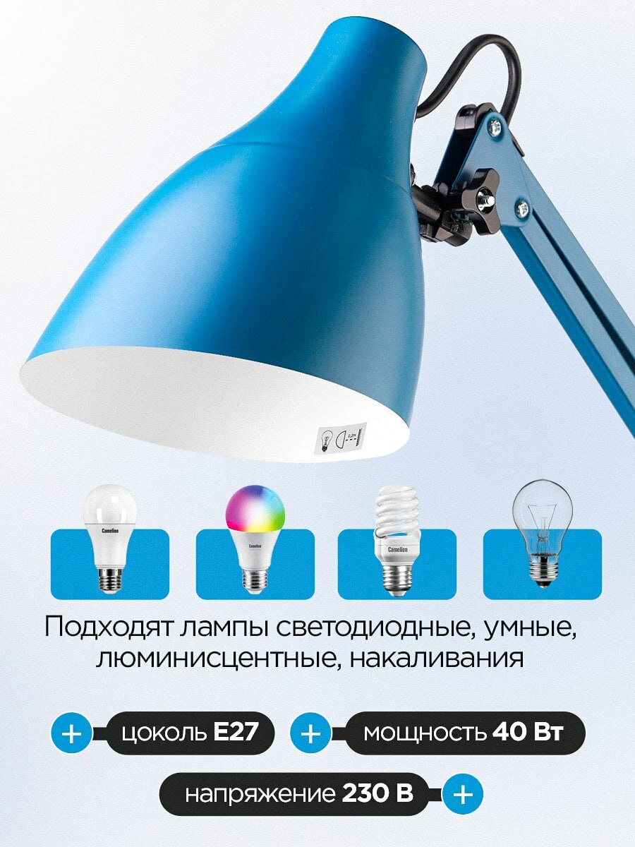 Торшер Camelion KD-332 C06 синий 40W, E27