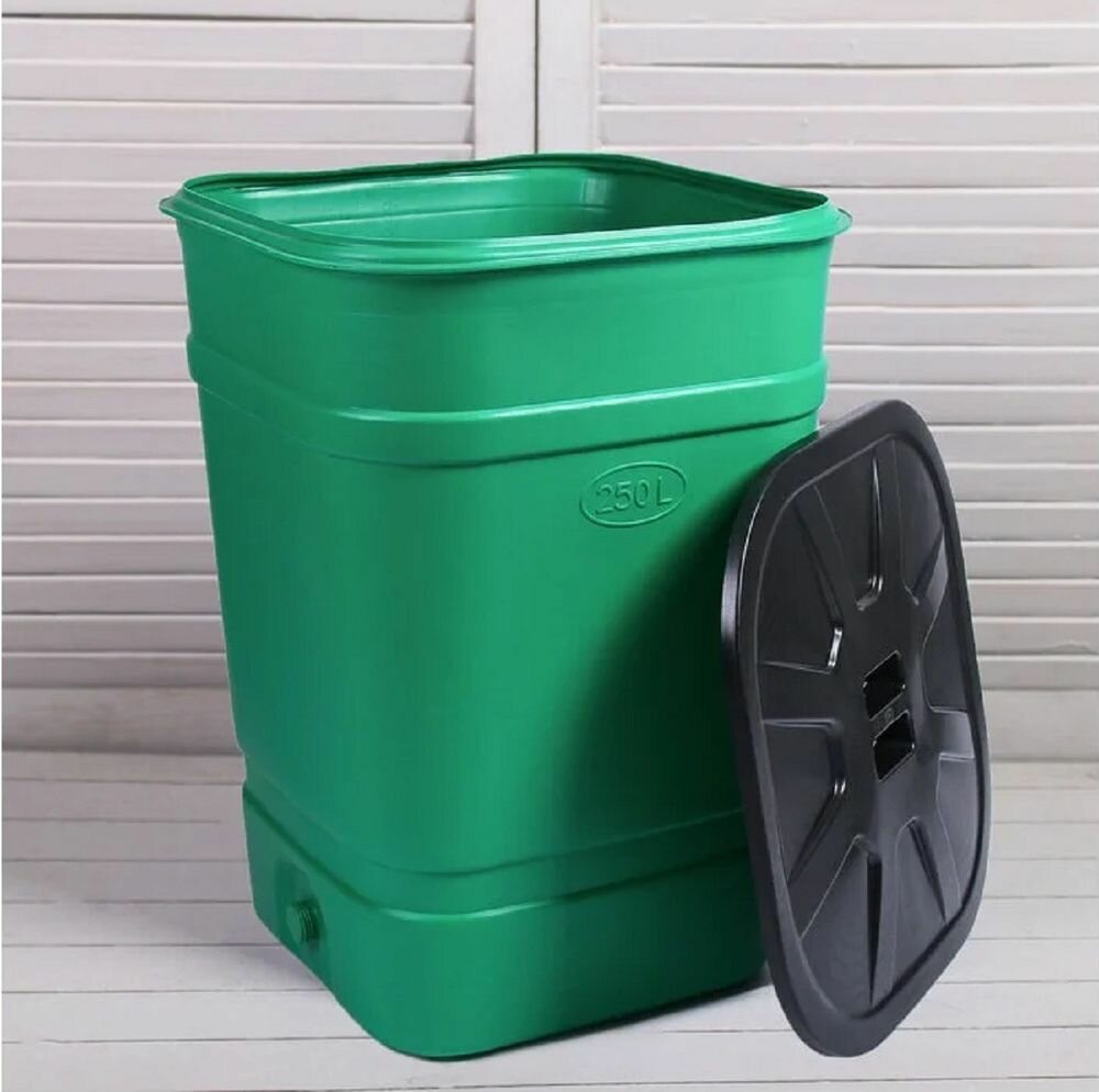 Бочка-бак квадратный с крышкой 250 л (зеленый), Альтернатива М1626