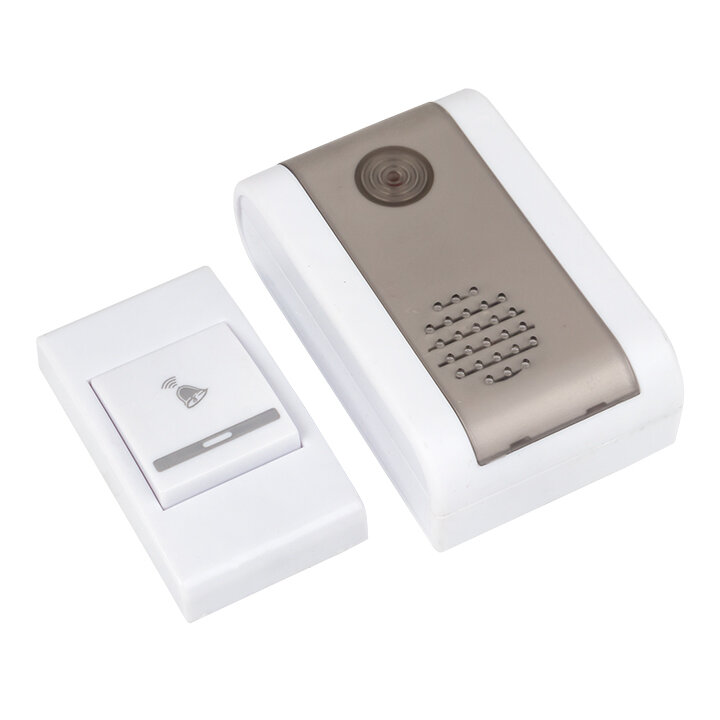 Купить Звонок беспроводной на батарейках с индикатором DBB-A-003 (36 мелодий, дистанция 80 метров), бело-серый
