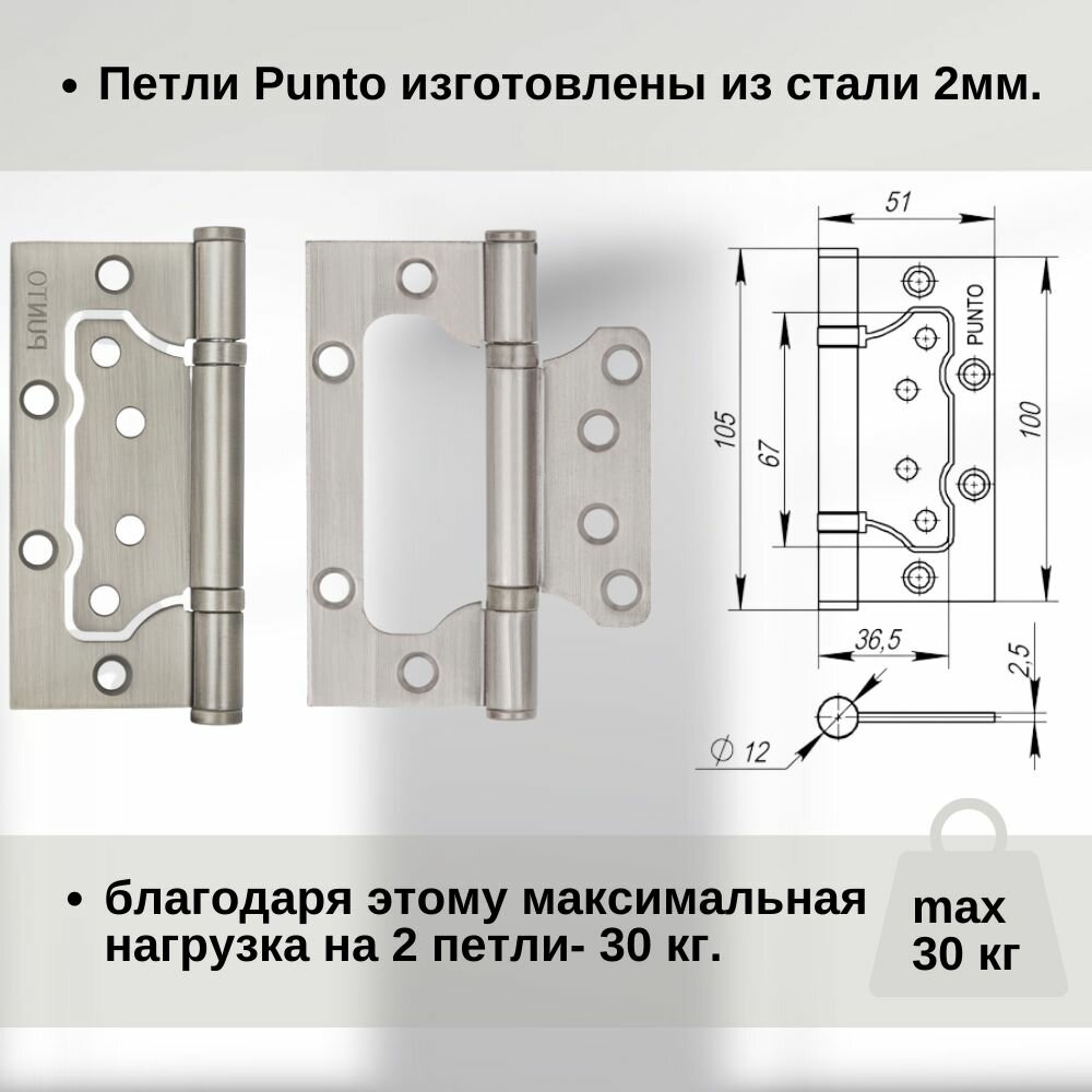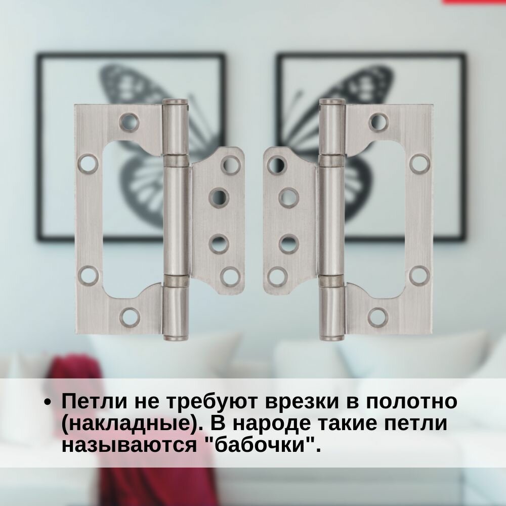 Купить Дверные петли Punto 2шт/ Петли-бабочки/ Универсальные петли без врезки – матовый никель