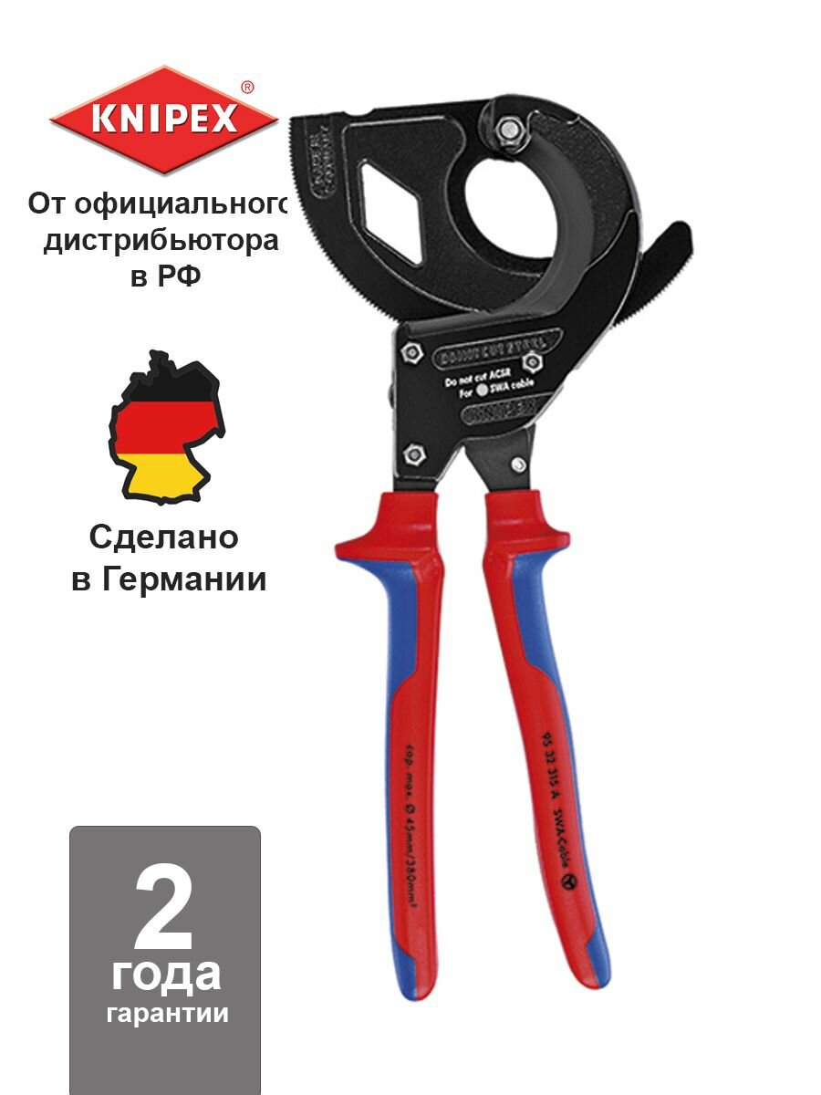Кабелерез KNIPEX c трещоткой, для кабелей со стальным армированием, SWA d 45 мм (380 кв.мм/MCM 750), длина 315 мм интересное:
