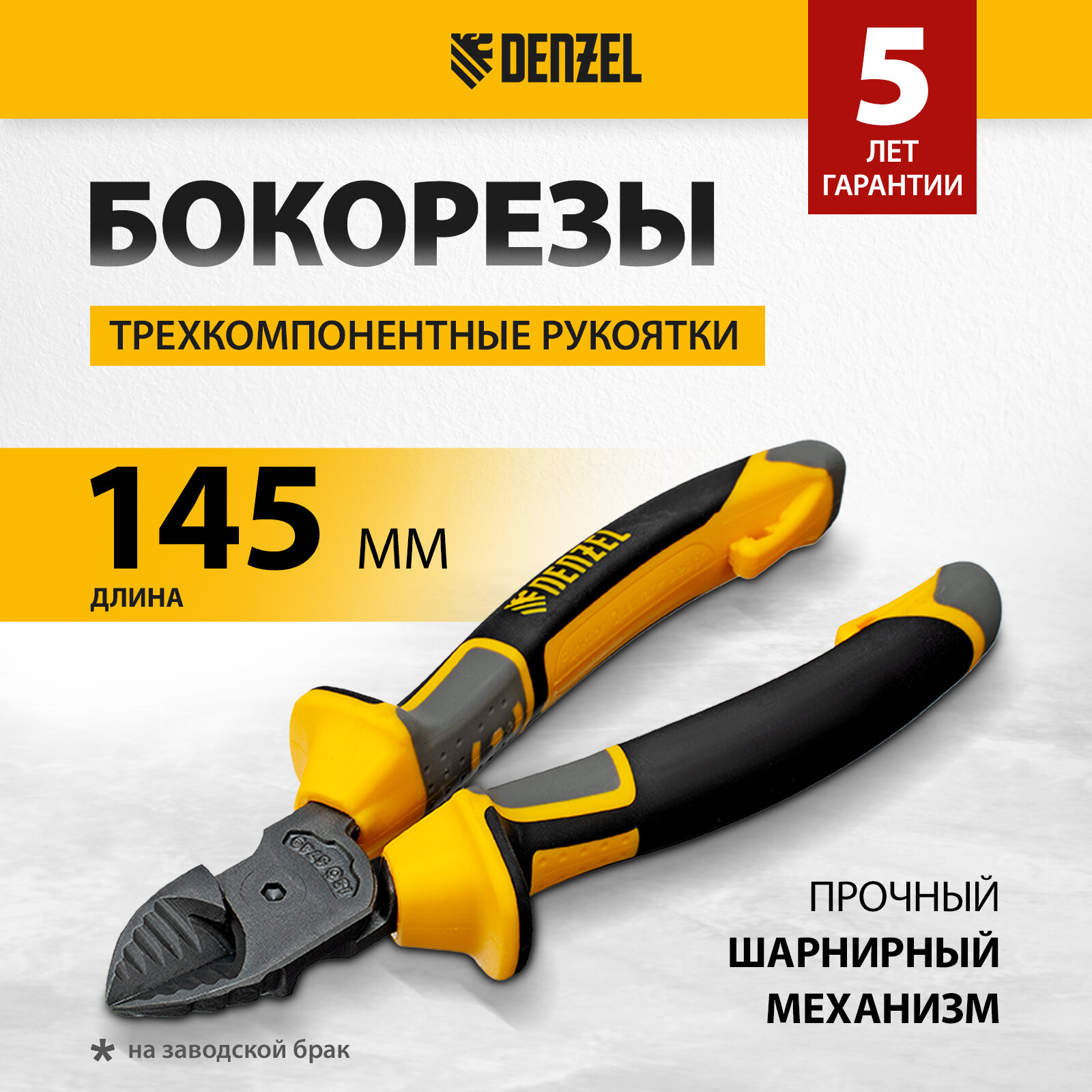 Бокорезы 145 мм, трехкомпонентные рукоятки// Denzel 17780 .