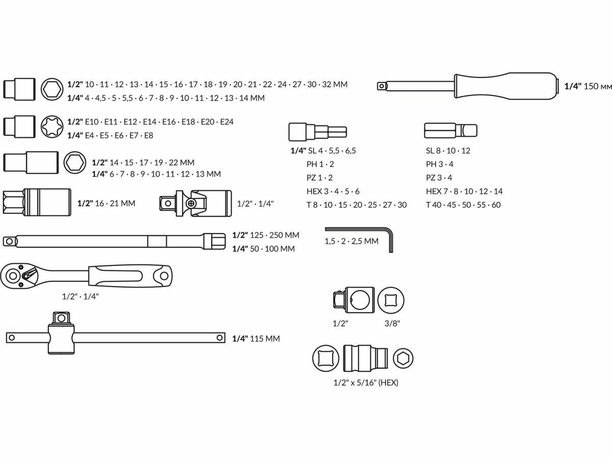 Набор инструментов 1/4", 1/2" 6 граней 108 предметов TREK (TR13108) интересное: