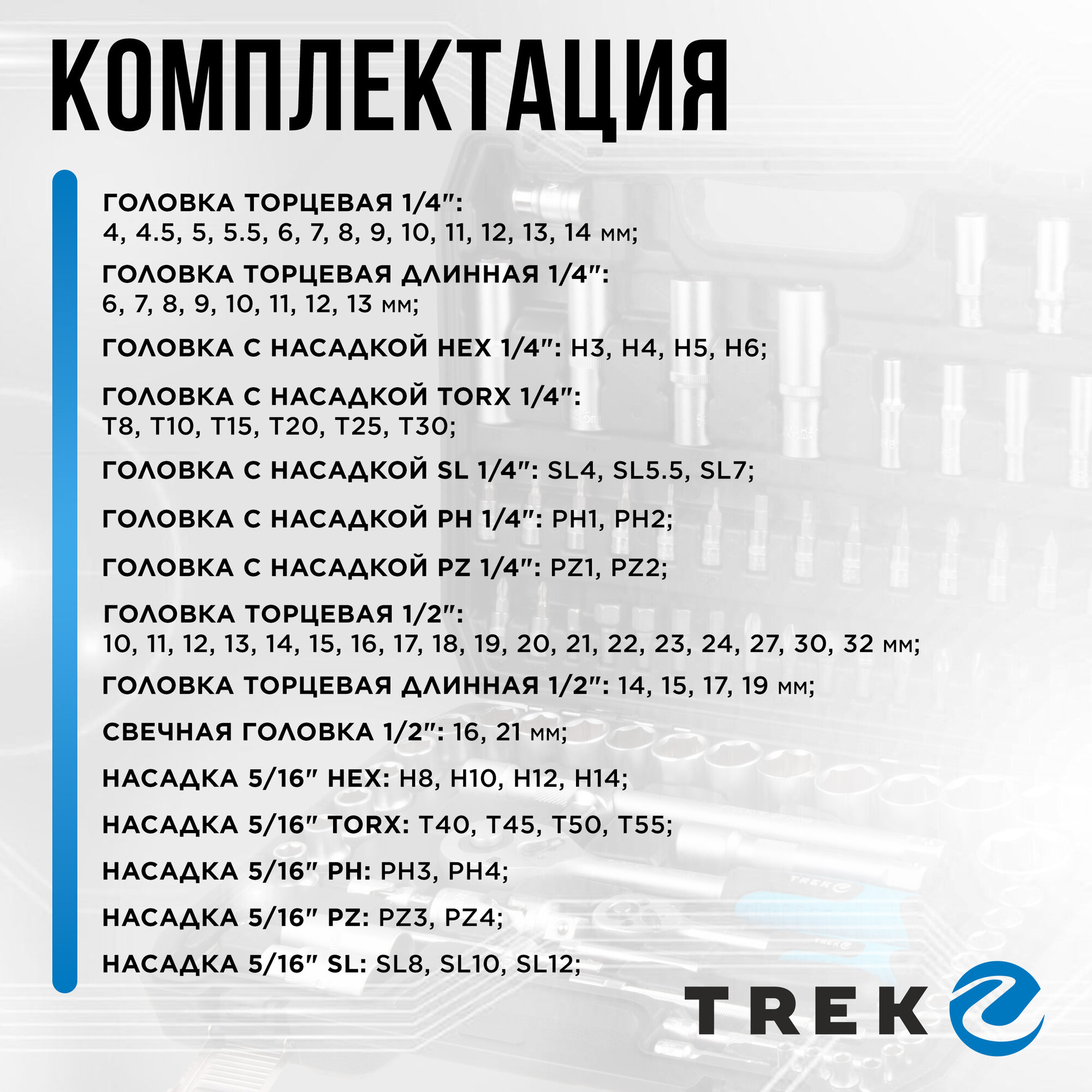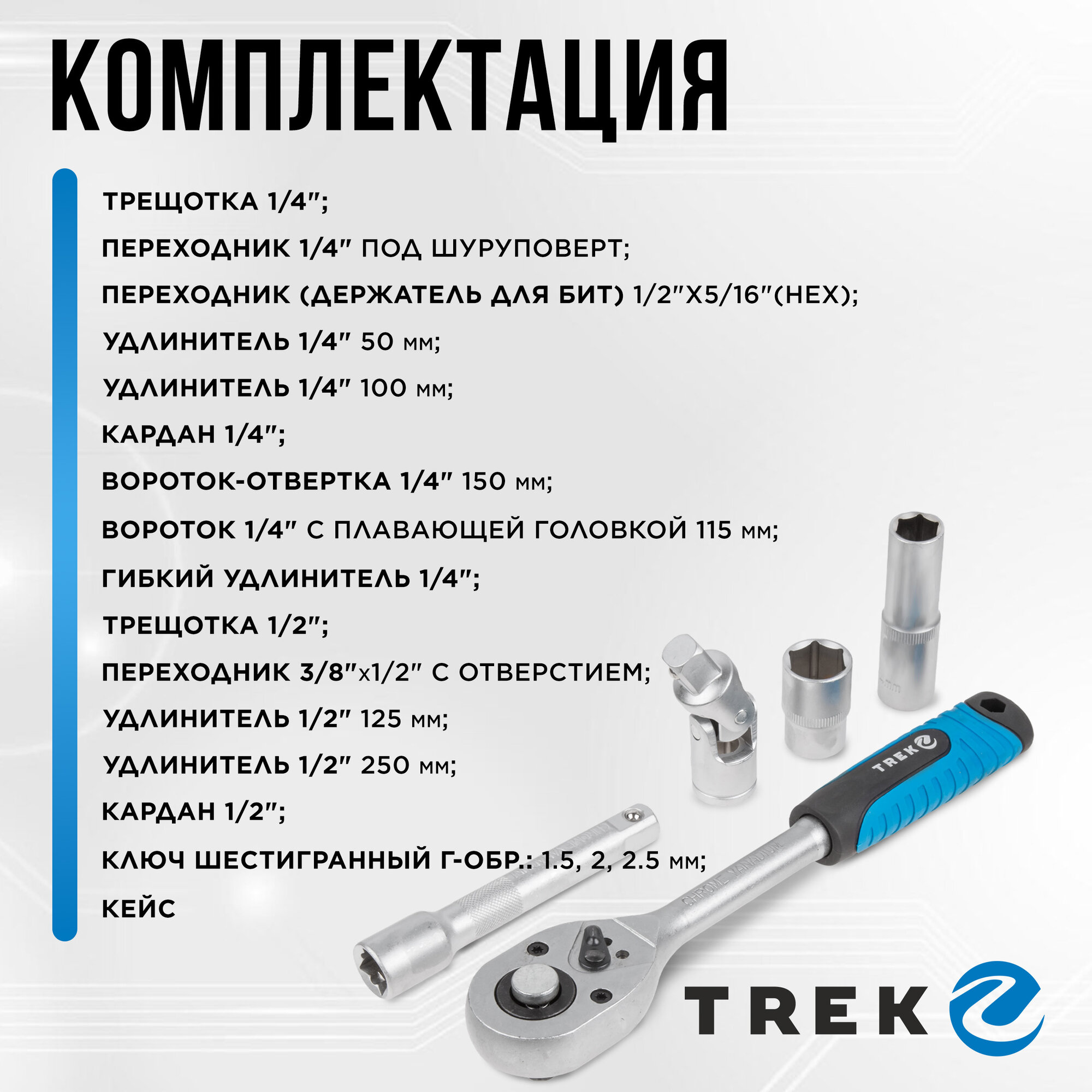 Набор инструментов 1/4" 1/2" 6 граней 94 предмета трек (TR13094) интересное: